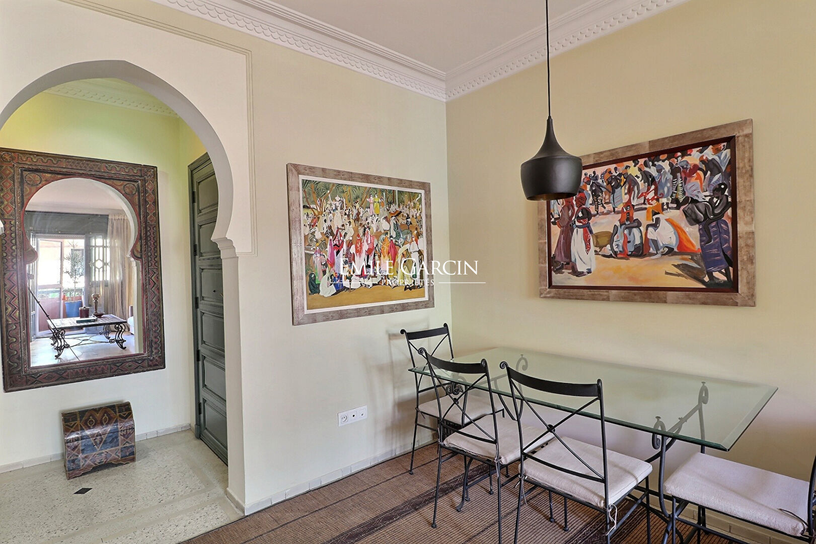 Located on the first floor of a magnificent building designed by renowned architect Charles Boccara, this apartment presents 78 sq.m of living area in the heart of the so-called "golden triangle" of the Hivernage district. The apartment enjoys peaceful immediate surroundings while remaining within easy reach of all local amenities. The interior comprises a living room with balcony, a kitchen with small pantry, two bedrooms (one with a balcony) and a bathroom. This property would make a perfect pied-à-terre for anyone with an affiliation with the city of Marrakech and the charm and character of Charles Boccara's architecture.