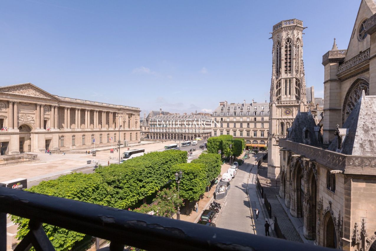 With an exceptional view of the Louvre colonnade and the Saint-Germain de l'Auxerrois Church, on the 3rd floor by elevator of a luxury stone building with a live-in caretaker. Emile Garcin Propriétés offers you a dual-aspect apartment, with a surface area of 119.26 sqm certified Carrez Law, bathed in sun and light, it benefits from generous volumes with very high ceilings and includes an entrance hall, a living room, a dining room, a separate fitted and equipped kitchen, two bedrooms, two bathrooms, a dressing room. A cellar completes this exceptional property, ideally located in the immediate vicinity of the Seine, the Palais Royal and the Tuileries.