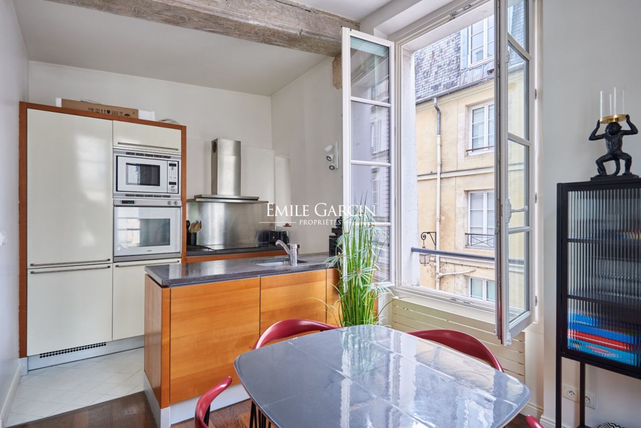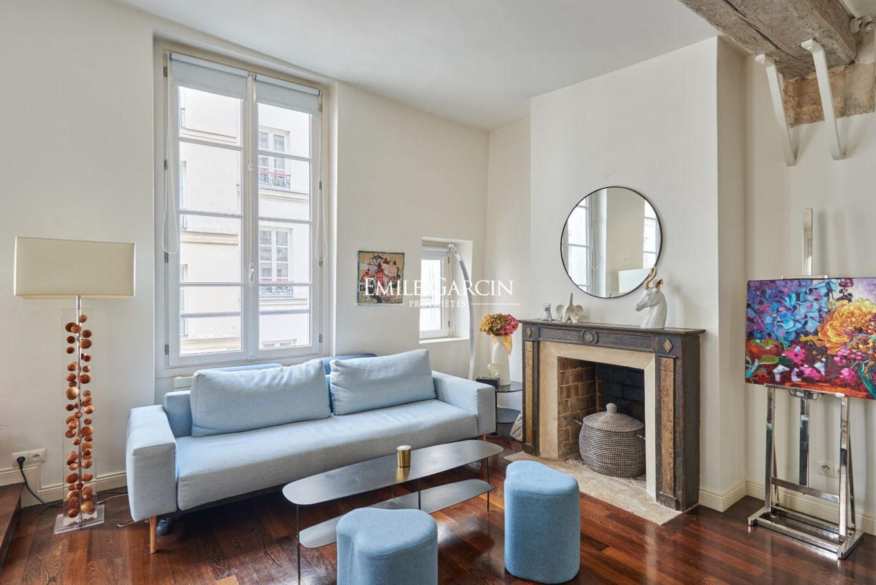 Accessed via a beautiful period staircase on the second floor of an 18th-century building, this apartment presents 57.19 sq.m of living area (Carrez law). It comprises a large bright corner living room with fireplace and open beams, a dining room, an open kitchen, a spacious bedroom with ensuite bathroom, a shower room and a separate WC. Very bright. In perfect condition. The ideal pied-à-terre near Saint-Germain-des-Prés. Condominiums of 12 units. Annual expenses : 6000 euros.