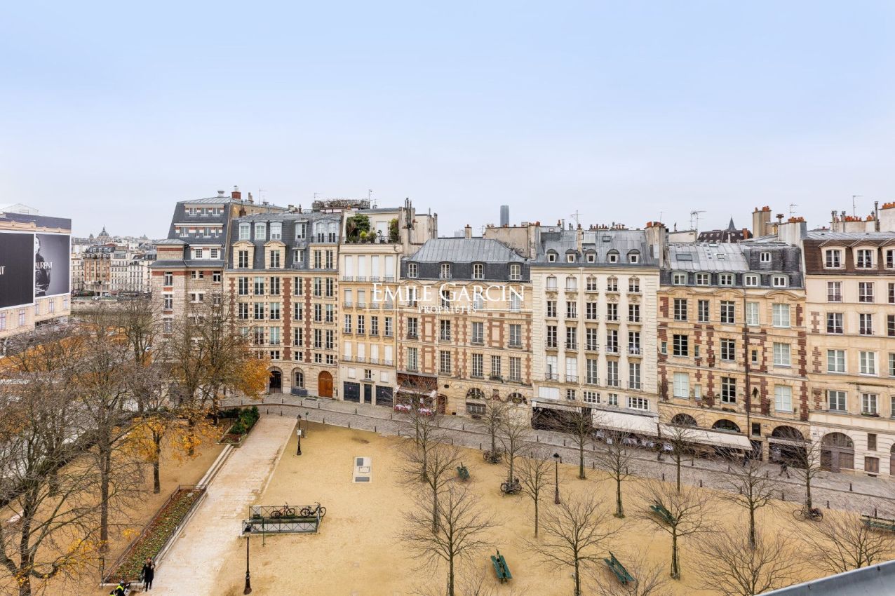 Exceptional location with panoramic views of the Seine. Nestling on one of Paris's most iconic and exclusive squares, the highly sought-after Place Dauphine, this magnificent apartment presents 104.73 sq.m of living area (Carrez Law) on the fourth floor of a magnificent and immaculately maintained period building. Bathed in light, this unique and rare property offers breathtaking views of the Seine and many of the city's most celebrated monuments. The apartment stands out for its fluid and perfectly balanced layout: entrance hall, separate kitchen, living room and two bedrooms overlooking the Seine. The bedrooms are served by a bathroom, a shower room and a separate WC. Elegant, rare, and timeless, this exceptional property also includes a cellar. This off-market apartment will appeal to buyers with the highest standards in search of a prestigious property with an incomparable view. Elevator access. Condominiums of 29 units (No proceedings in progress). Annual expenses : 3300 euros.