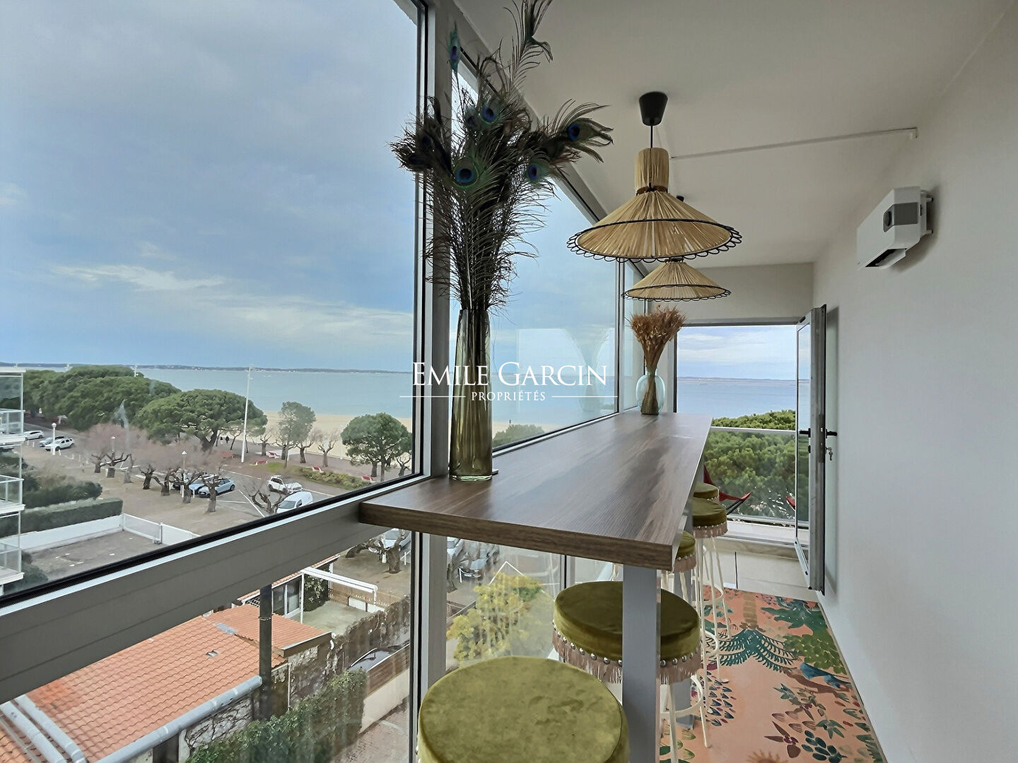 In the heart of Arcachon, this beautiful, high-end apartment of approximately 57 sq m boasts exceptional panoramic views of the Arcachon Bay. Nestled in a perfectly maintained building with an elevator, this property combines a prime beachfront location with tranquility and contemporary comfort, just steps from the main beach and the amenities of the town center.