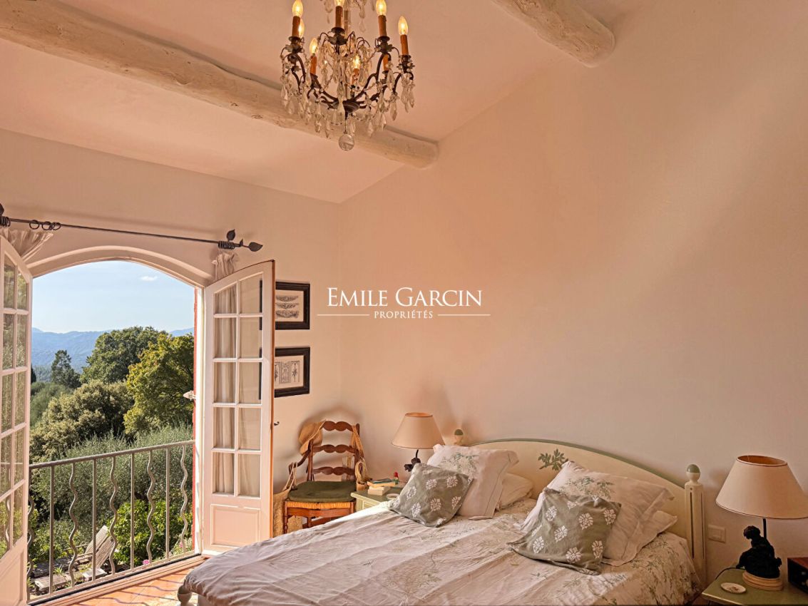 Idyllically located in unspoiled surroundings on the Côte d'Azur, in Spéracèdes, this charming property presents 170 sq.m of living area. Having been home to a writer, a perfumer and a renowned industrialist over the years, the property offers a rare blend of authenticity and artistic heritage. An inspiring and peaceful abode imbued with soul and serenity, the property is bathed in light and boasts sea views. The spacious living and dining room, enhanced by high ceilings and a large fireplace, back directly onto a terrace. The interior is decorated in an elegant Provençal style, harmoniously blending character, authenticity and understatement. The house has four bedrooms, two of which have ensuite bathrooms. Outside, you will find a landscaped garden of 2,400 sq.m featuring an olive grove and lemon trees, which surrounds a heated swimming pool. There is also a garage.