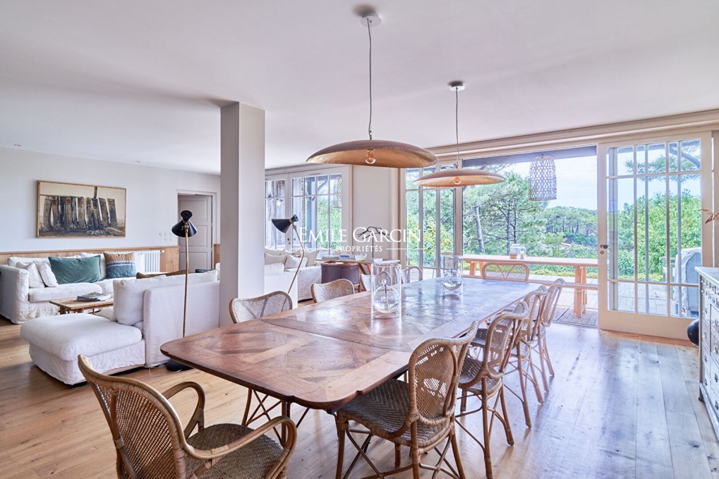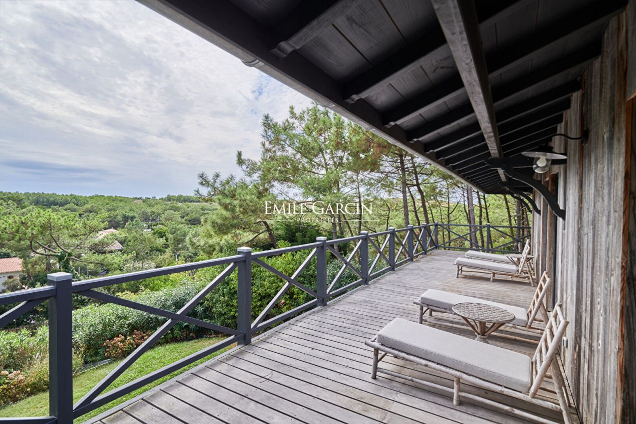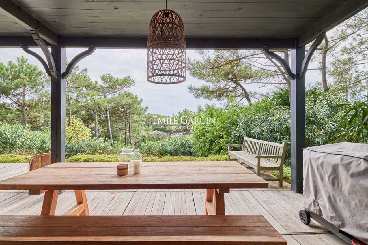 Located in a privileged and unspoiled residential area in the heart of Cap Ferret, this family home with its typical local architecture boasts an exceptional location close to the local shops and beaches. Nestling in lush green surroundings, this magnificent residence offers generous living spaces and modern comforts that have been carefully designed down to the smallest detail. The vast, light-filled living room of 100 sq.m backs onto a large wooden terrace with panoramic views of the pine forest and ocean dunes. There is an adjoning La Cornue-fitted kitchen with bespoke furnishings. The sleeping quarters comprise six bedrooms, each with its own ensuite bathroom, backing onto an upper terrace and ensuring absolute privacy and comfort. Additional facilities include a games room and a utility room. Outside, a secluded swimming pool blends harmoniously into the landscaped gardens. A large garage with space for up to three vehicles provides added comfort for family life or when hosting guests. This rare and elegant property presents the perfect blend of generous living spaces, high-end amenities and a natural setting, making it the ideal setting in which to fully embrace the pace of life in Cap Ferret. An exceptional find for anyone in search of privacy, understated luxury and proximity to amenities.