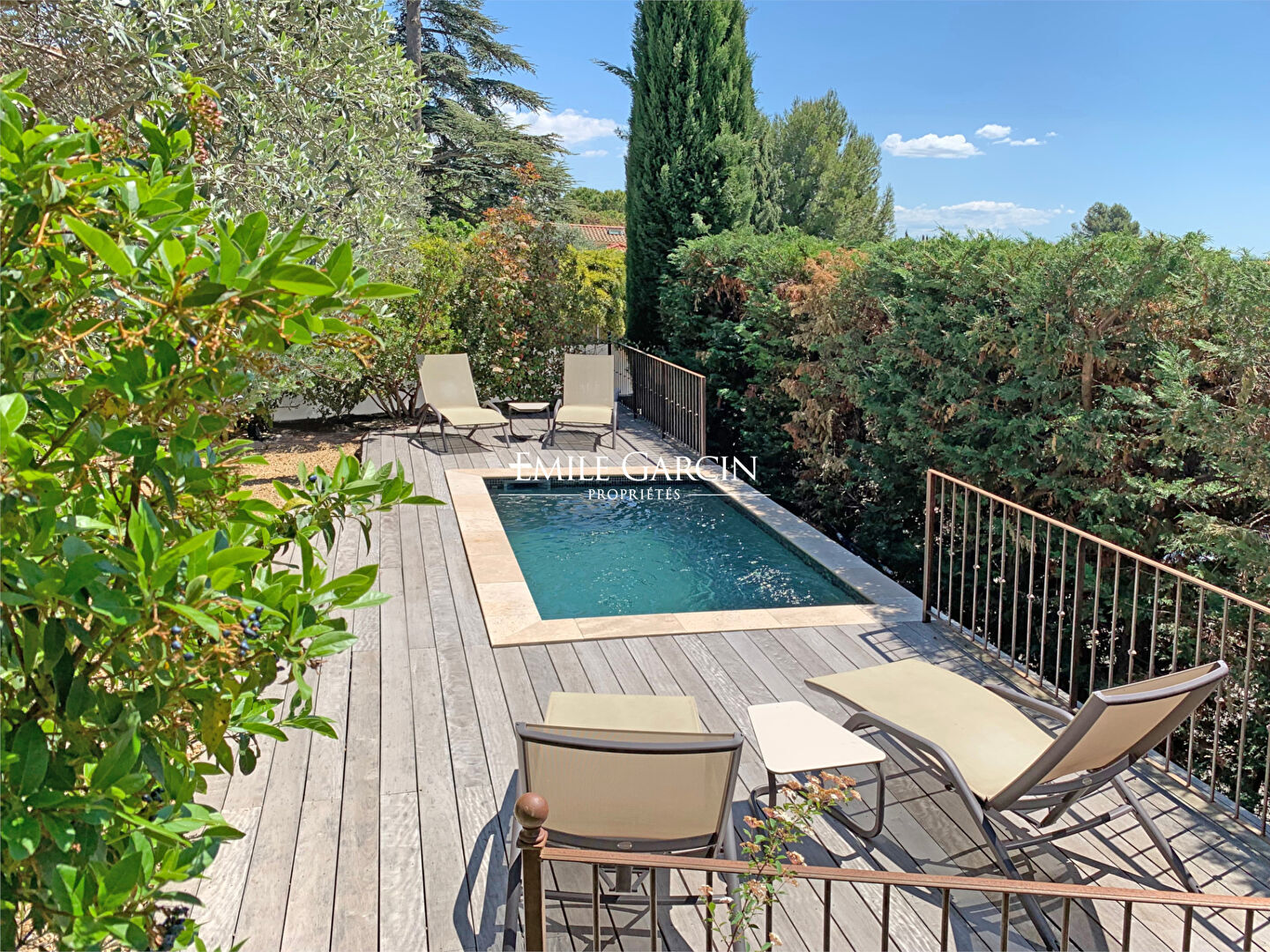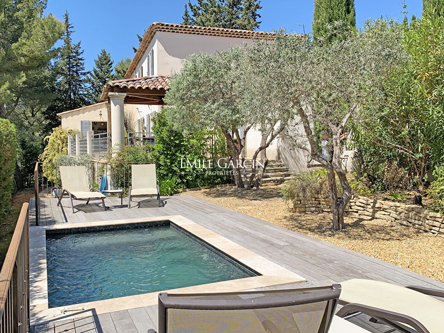 Built in 2006, this bastide-style country house presents 260 sq.m of living area on 952 sq.m of private grounds. It includes six bedrooms, a large living room, an open kitchen, an office, a separate studio, two bathrooms, a garage, a cellar and a large basement. The outdoor spaces include a beautiful terrace and pool area with a fountain, designed for entertaining guests and relaxing. Located 2 kilometres from the Cours Mirabeau, this property offers easy access to the cultural sites and activities of the city centre, as well as convenient road connections and proximity to schools of all levels. Presenting the perfect blend of modern comfort and Provençal character, this property would make an ideal family home with independent accommodation in the form of an annexed studio.