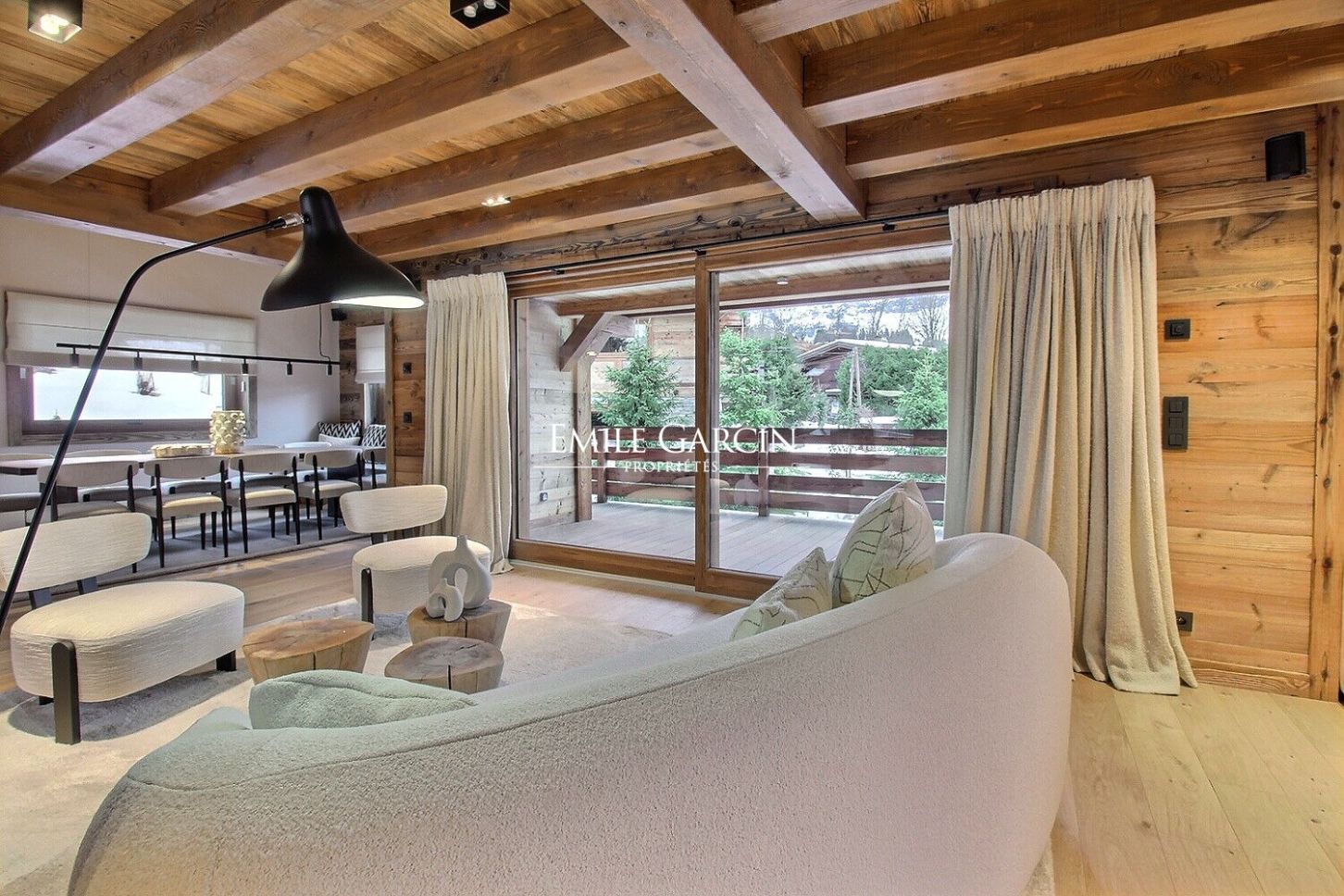Ideally located near the golf course and ski slopes of Mont d'Arbois, this chalet offers 323 sqm of living space. It features a spacious living room, an open-plan kitchen and dining area, six en-suite bedrooms, including a master suite, a wellness area with a fitness room, hammam, and home cinema. The chalet is sold fully furnished and decorated to a high standard.