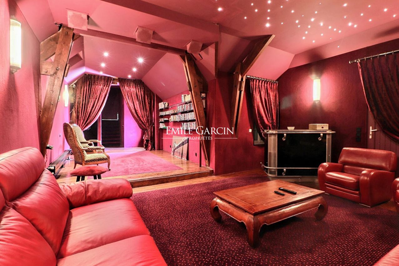 40 minutes from Paris by the A13 and 15 minutes from Magny-en-Vexin or Roche Guyon, in the Yvelines, in the Vexin Regional Natural Park, beautiful holiday home from the very beginning of the 19th century and its house caretaker completely renovated. The main house with a living area of approximately 450m2 has beautiful reception areas, 6 bedrooms including a suite and an independent apartment, as well as a cinema room. The caretaker's house, with a living area of approximately 73m2, has also been completely renovated. The whole is in excellent condition. The park of just over 3 hectares is very nicely landscaped, it houses a spring, a water tower, a wash house, a fountain. A large paddock, a barn with boxes, preserved nature and surrounding woods will appeal to horse lovers. The sheds and cellars, the carport, the small summer kitchen bring the last touches of comfort to this charming property.