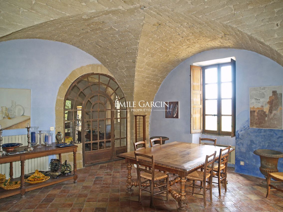 Located in the historic centre of a charming village in the South Luberon, just 30 minutes from Aix-en-Provence and its TGV station, the origins of this 18th-century mansion date back to the 14th and 16th centuries. It presents 475 m² of living space, in addition to several outbuildings including a large garage and a 100 m² room (in need of conversion). Outside, you will find a 100 m² terrace boasting a magnificent view of the surrounding countryside as far as Mount Sainte-Victoire. Conservatory. Swimming pool (5.5 x 3m). Double windows, vaulted stables once belonging to the village castle, high ceilings. Full of character and authenticity. Utterly unique!