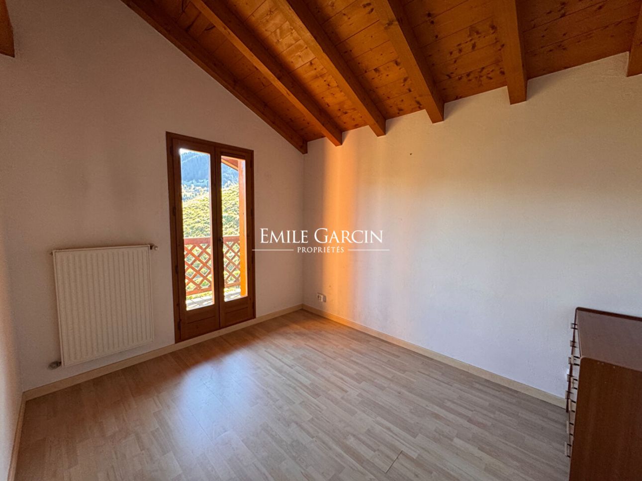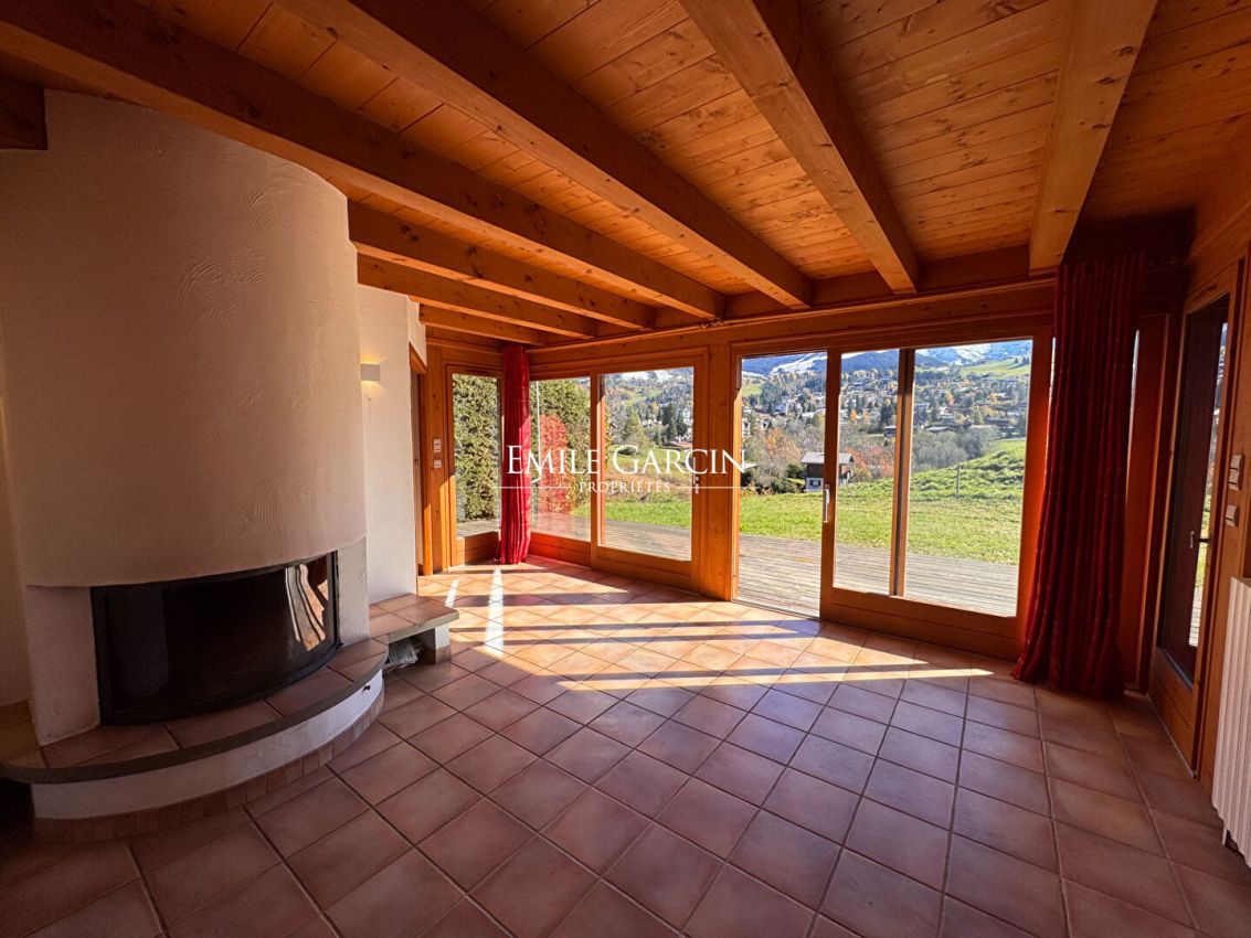 Chalet in need of renovation located near the centre of Megève and boasting delightful views of Mont Blanc. The chalet sits on 3149 sq.m of land, including a building plot of 573 sq.m (potential to add a second chalet). - Existing chalet: Ground floor: covered parking for two cars, ski and bike storage, entrance hall, living room, open kitchen, bedroom with ensuite bathroom, separate WC, utility room. Upstairs: four bedrooms (two with balconies), two shower rooms, separate WC, mezzanine. Basement: utility room, crawl space. Living area of the chalet: 135.80 sq.m. Renovation and development project estimated at approximately 250,000 EUR including taxes - further information (including virtual images) available upon request.