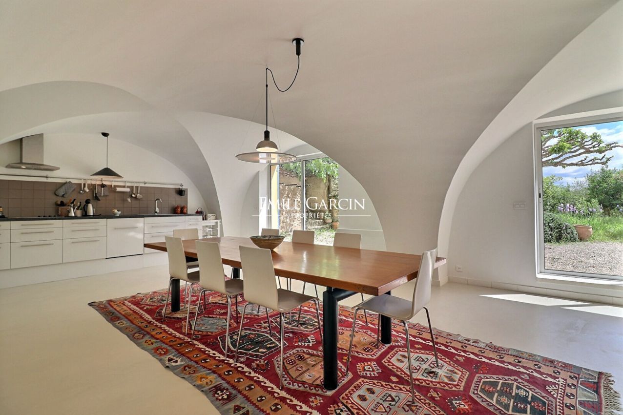 Located a stone's throw from the village and its castle, this renovated farmhouse offers approximately 230 sq.m of living area on 5,000 sq.m of land planted with olive trees, fruit trees and a beautiful truffle field. The interior comprises a large living room with fireplace, an open kitchen, four bedrooms (including a vast master bedroom), an office and a separate single-bedroom duplex apartment. Its outbuildings include two garages and storage cabins. Unobstructed views of Mount Sainte-Victoire. Full of charm.