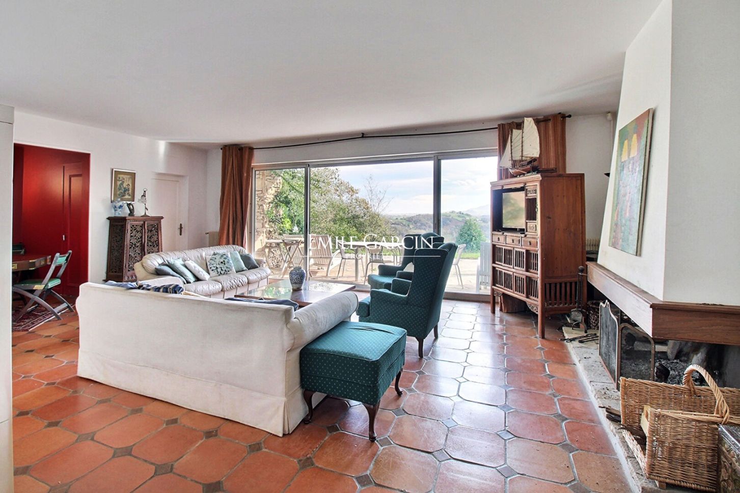 Located in Sare, in a commanding position on the slopes of La Rhune mountain, this exceptional property, designed in the 1960s by the iconic architect Isidro de Monzon, unfolds in the heart of a protected natural environment. Its stone architecture, perfectly integrated into the landscape, immediately creates a warm and authentic atmosphere in harmony with nature. Situated on over 1.6 hectares of private land within an estate of approximately 5 hectares, the house enjoys complete privacy, while being just minutes from the village of Sare and less than half an hour from the beaches. Built on approximately 200 square meters on one level, the house comprises a charming entrance hall leading to a double reception room facing south, complete with a fireplace, and opening onto a large terrace with 180° views of the mountains and the village. The kitchen and its pantry seamlessly extend the living spaces. A large office with its own separate entrance opens onto a private terrace, an ideal place to work or relax in harmony with nature. Six bedrooms with built-in storage, two bathrooms, a shower room, and a powder room provide ample space for entertaining friends and family. The property also includes a garage, a three-car carport, and a storage shed, all in keeping with the overall architectural style. The house captivates with its absolute tranquility, abundant sunshine, and close connection to the surrounding nature. Its unobstructed and unique mountain views create an exceptional atmosphere, making this a true haven for those who appreciate authenticity and unspoiled landscapes. A charming, rare, and timeless home, its privileged setting, distinctive architecture, and potential will appeal to those seeking exceptional properties. Asking price: EUR1,260,000 including agency fees of 5% (VAT included) payable by the buyer. Net selling price EUR1,200,000. (5.00 % fees incl. VAT at the buyer's expense.) Condominiums of 3 units.