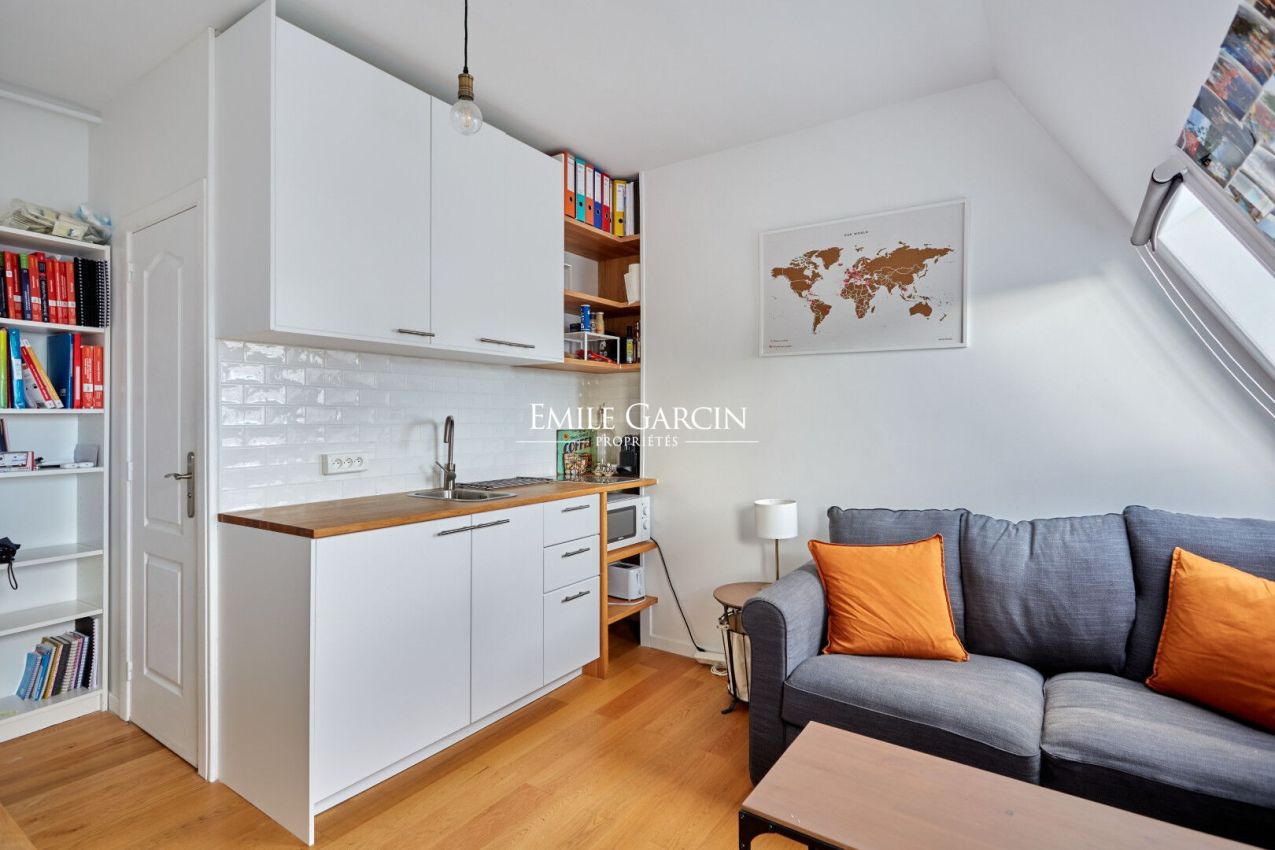 Idyllically located on the seventh floor of a beautiful Haussmannian building near the Place des Ternes, this charming fully-renovated single-bedroom apartment presents approximately 20 sq.m of living area. Efficiently laid out and tastefully furnished, it comprises an entrance hall, a living room, a fitted and equipped open kitchen, a bedroom and a shower room. The toilet is situated on the landing, as the installation of a Saniflo toilet is not permitted under the building regulations. Stair access only.