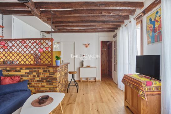 Exclusively, near the Town Hall, in a building of the XVII without elevator, on the 6th and last floor, courtyard, full sky, a bright studio apartment of 24.03 m² Carrez law, including an entrance, a living room with open kitchen and a bathroom with toilet. Compact plan, in absolute calm.