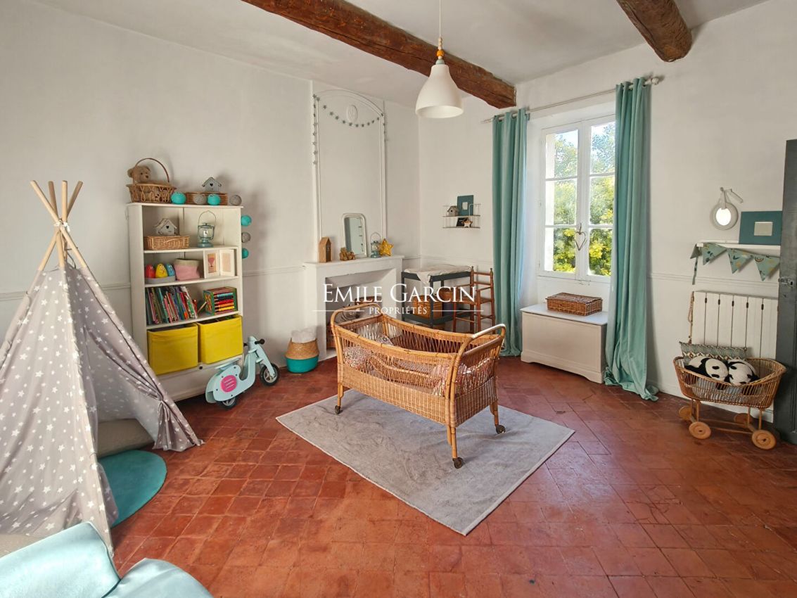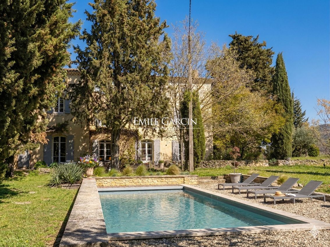 This property is situated in peaceful surroundings affording beautiful views of Mont Ventoux. Built in the 19th century, it sits on 9,400 sq.m of magnificent landscaped grounds ensuring tranquility and peace. The property has retained its original character in the form of beautiful features such as terracotta floor tiling, woodwork and open beams. The ground floor comprises an entrance hall, a pantry and WC, a kitchen, a dining room with fireplace and two adjoining living rooms, also with fireplaces. Upstairs, there are six bedrooms and an office with a terrace. Some minor renovations are needed. To the south of the house, you will find a delightful garden with swimming pool and leafy garden. To the north, there is a parking area and a vineyard. All local amenities are 1 km away; the A7 motorway is 20 minutes away; Avignon TGV station is 40 minutes away.
