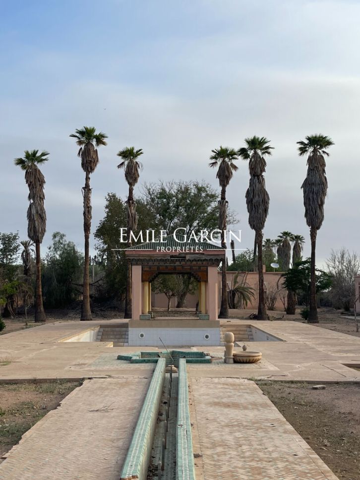 Property of 700 sq.m on 1.2 hectares of land in the Triangle d'Or district of Marrakech. Comprises a large main house (in need of renovation) and two guest pavilions. Very good potential. Idyllically located. In need of significant renovation work.