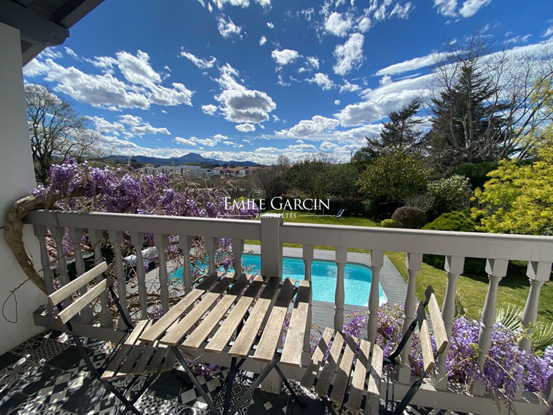 Nestling in landscaped gardens of over 1,100 sq.m, this beautiful family home presents the perfect blend of comfort, space and conviviality. The perfect setting for your holidays among friends or family, it offers generously sized rooms and several areas dedicated to relaxation. The house is spread over two levels. On the ground floor, you will find a bright living room with insert fireplace and a beautiful dining area with fully equipped open kitchen, all backing onto a large terrace. There is also a double bedroom with ensuite bathroom, a gym and a laundry room on this level. Upstairs, you will find a master suite with a dressing room and a balcony offering views of the Larrun, as well as three other bedrooms (one of which has a street-side balcony) and a large shared bathroom. The outdoor spaces are equipped with a large enclosed garden, a swimming pool, a plancha area with BBQ, a pizza oven and a swing for children. Private parking accessed via an electric. Wi-Fi.