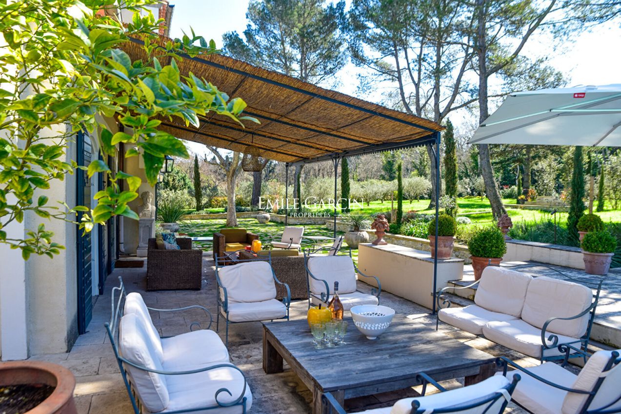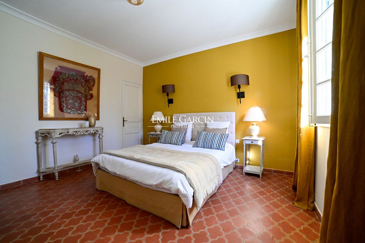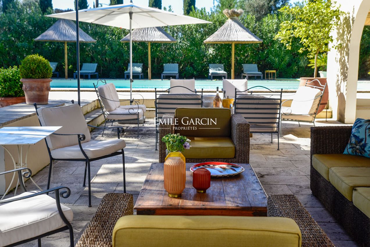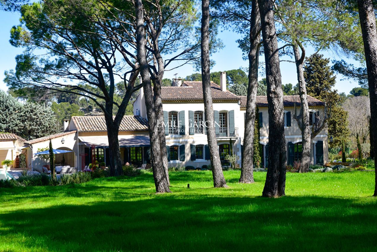 An endlessly charming Provençal property located 5 minutes from Saint-Rémy-de-Provence. This house sits on 8,000 sq.m of private grounds adorned with pine trees, olive trees and cypresses. Bright and fully air-conditioned, the house makes the perfect setting for a holiday among family or friends. 5 bedrooms, 4 bathrooms. Swimming pool (15 x 6m). Tennis court. Several terraces.