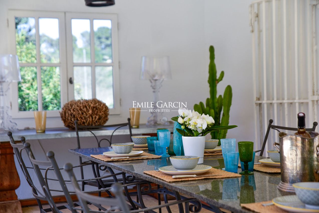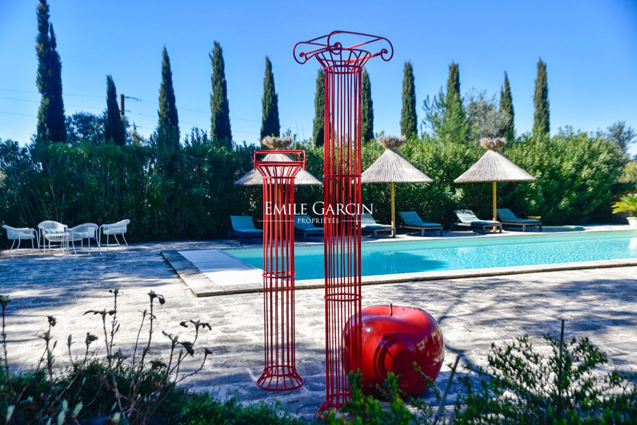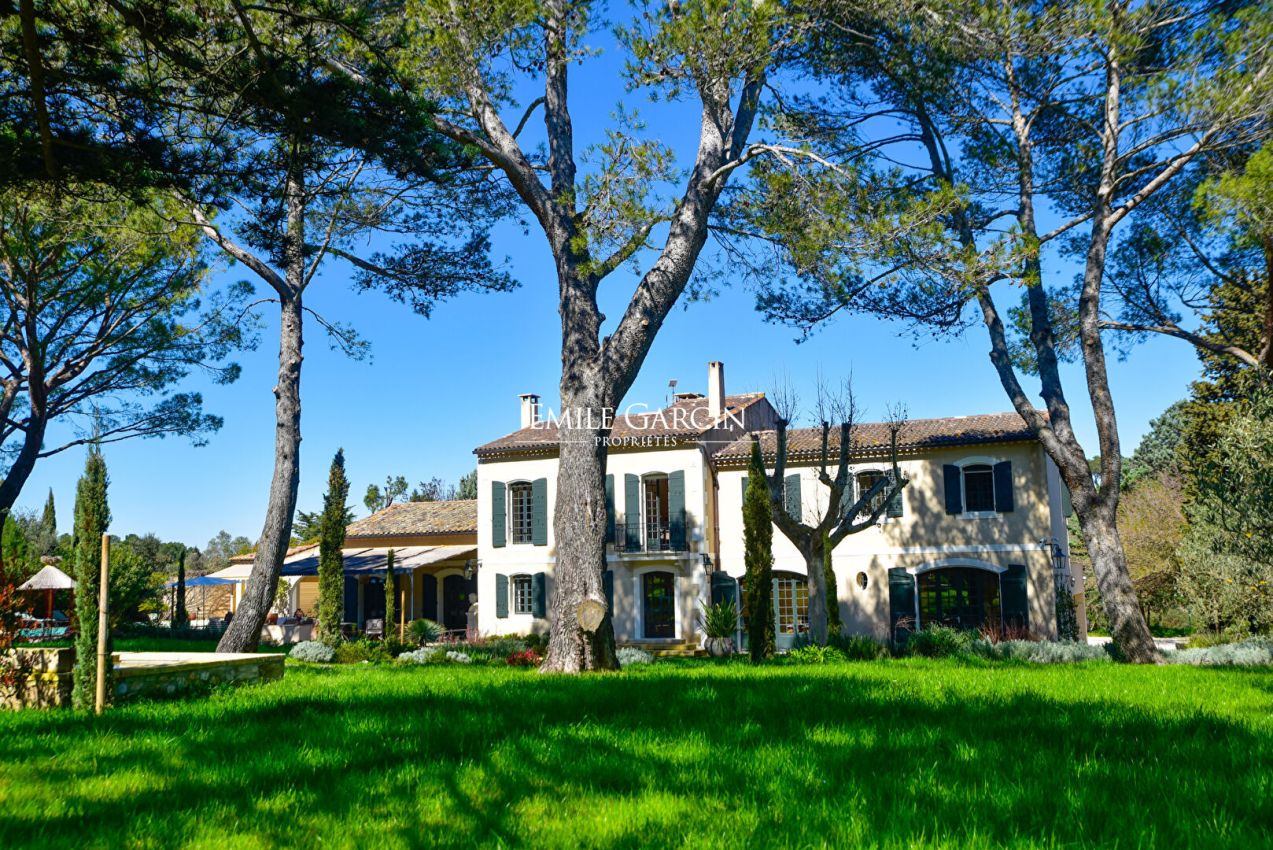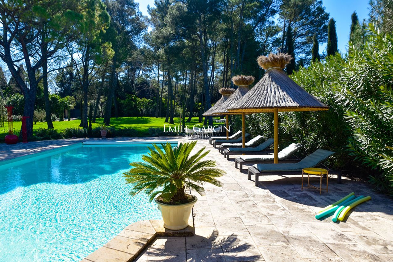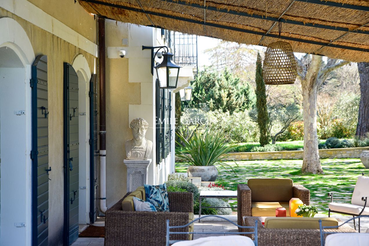 An endlessly charming Provençal property located 5 minutes from Saint-Rémy-de-Provence. This house sits on 8,000 sq.m of private grounds adorned with pine trees, olive trees and cypresses. Bright and fully air-conditioned, the house makes the perfect setting for a holiday among family or friends. 5 bedrooms, 4 bathrooms. Swimming pool (15 x 6m). Tennis court. Several terraces.