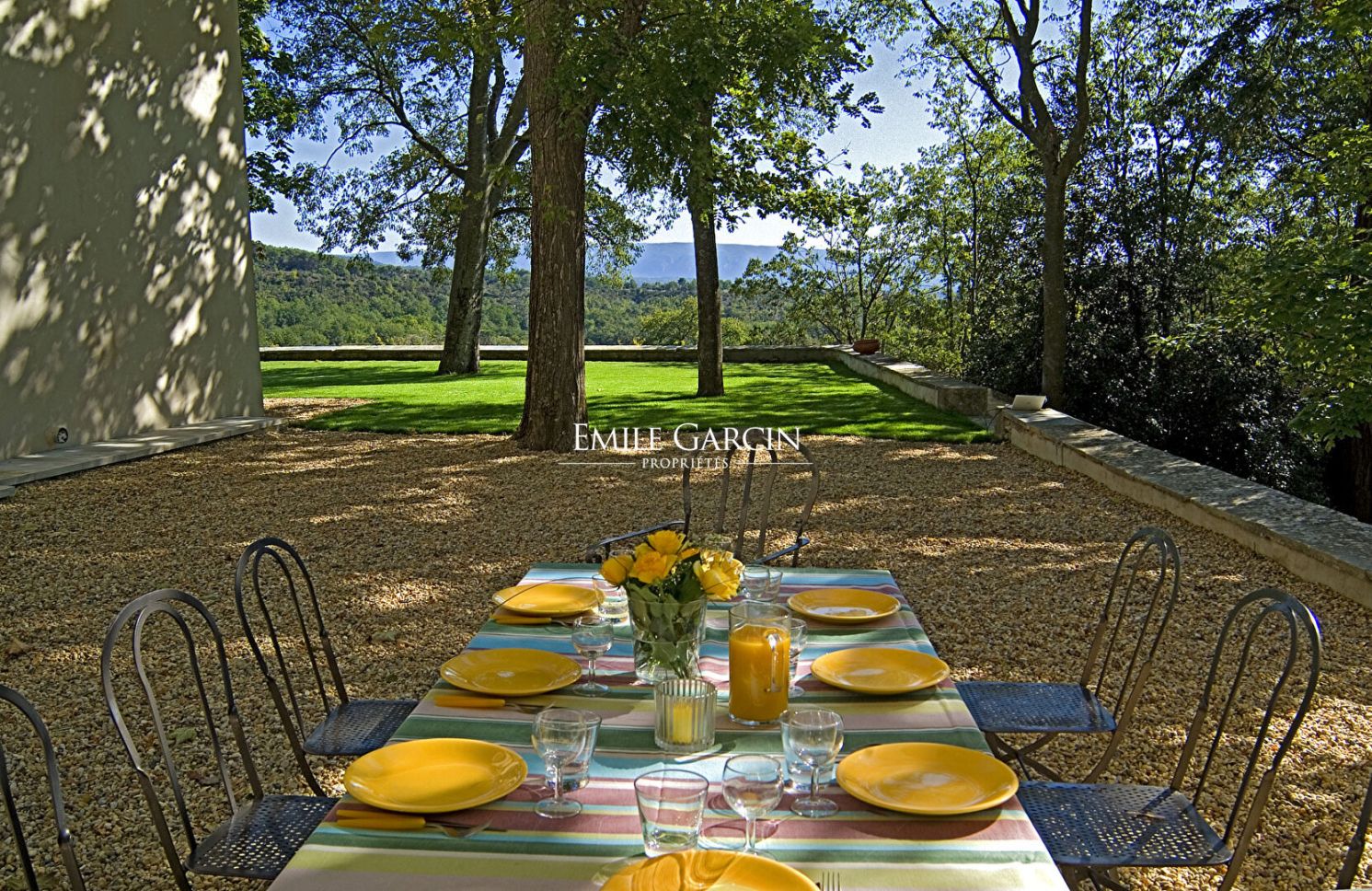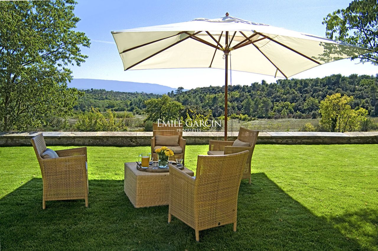 A very fine renovated 19th century bastide. In a commanding position it has magnificent views over the countryside and the massif de Luberon. Very fine gardens with lawns within 13 hectares of complete peace. Heated 13 x 4 m swimming pool with summer kitchen and living room. Available for holiday rental at all seasons Prices and dates on request.