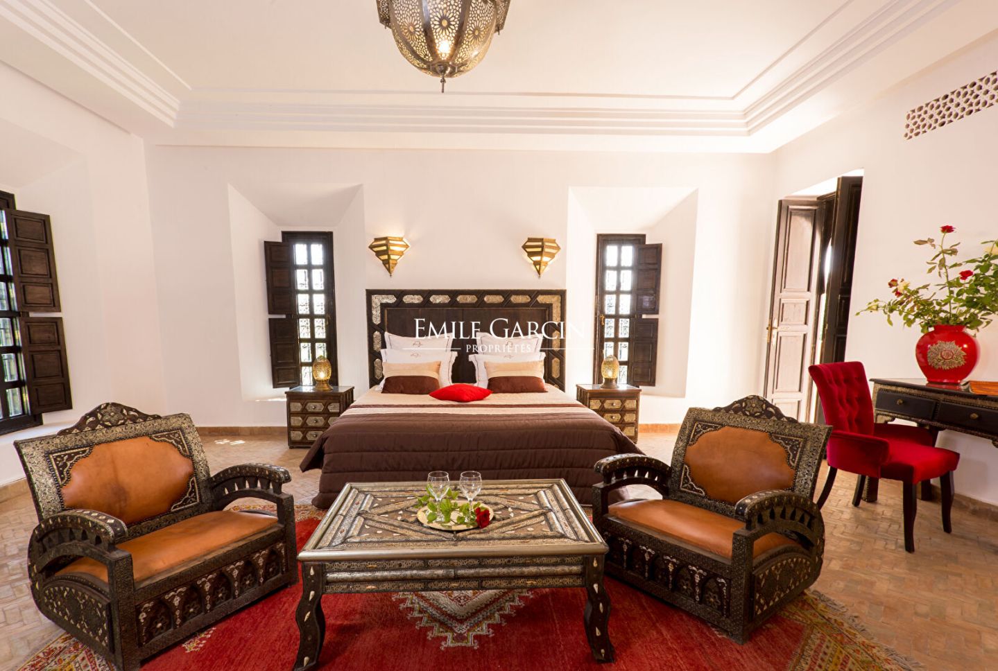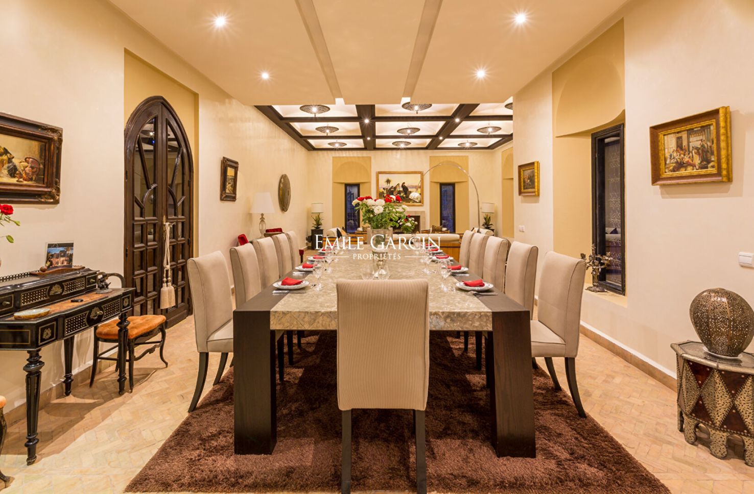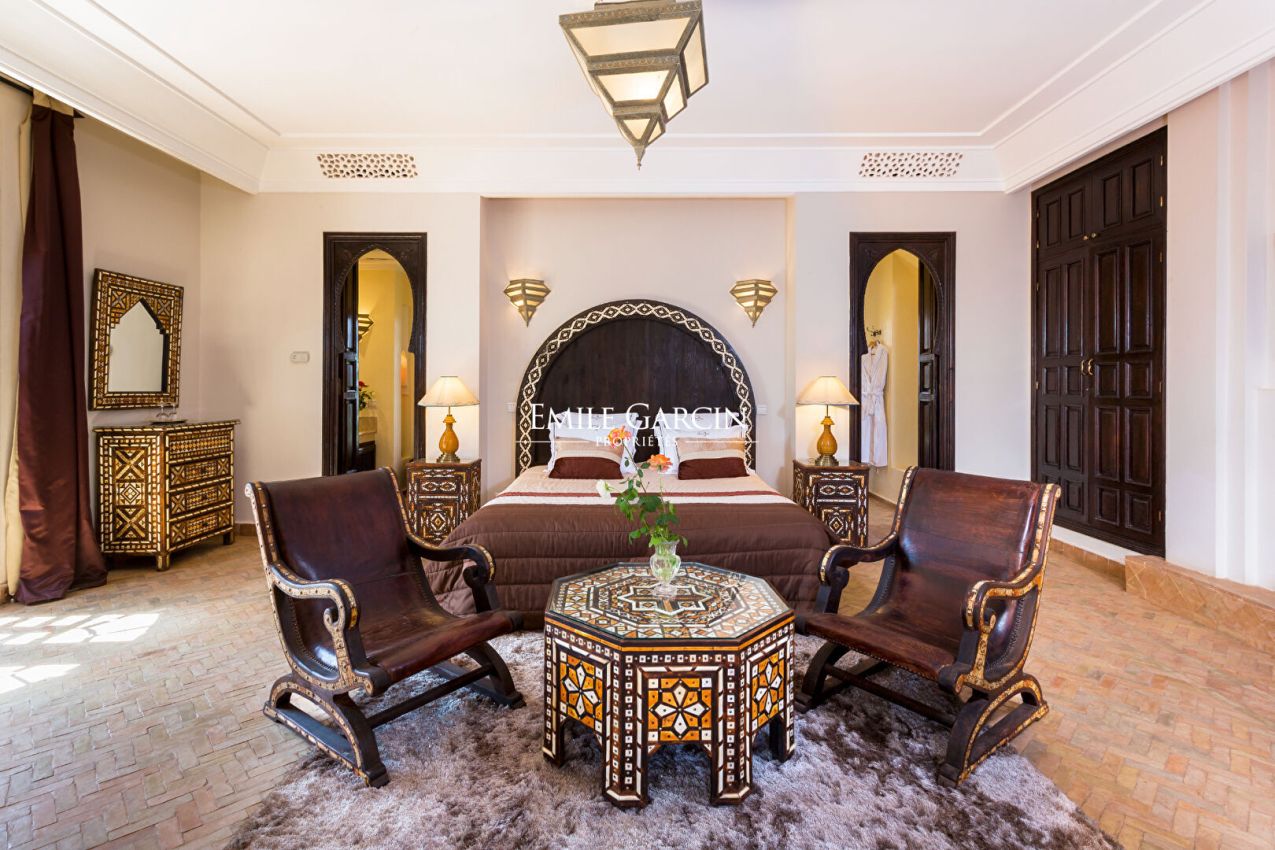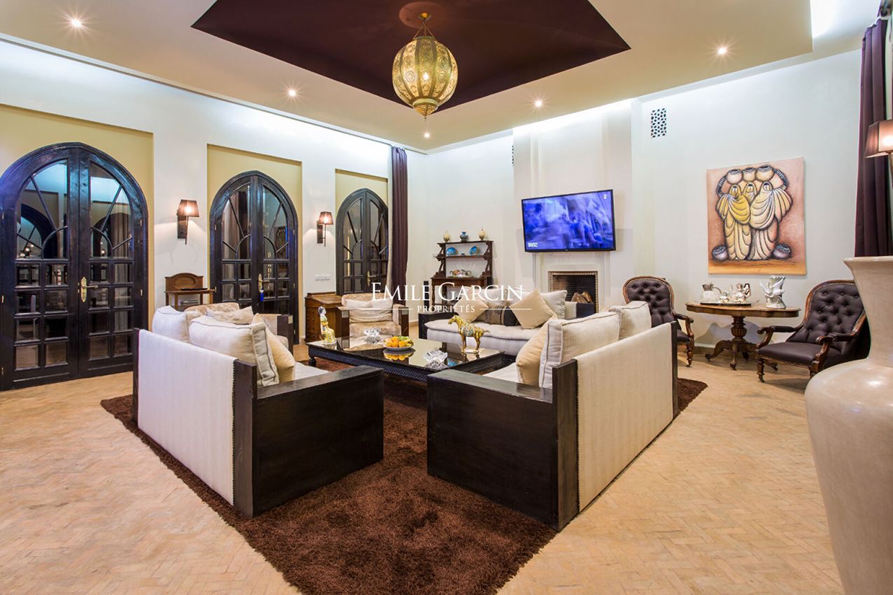 This magnificent oriental-style villa presents 1600 sq.m of living area on 1.6 hectares of land planted with lush vegetation. Offering accommodation for 22 people across 11 suites, including 3 independent villas of 50 sq.m, this is the ideal setting for family reunions or holidays with friends. The property has everything you may require for an unforgettable stay: 22-metre heated swimming pool, 100 sq.m outdoor living area, and spa with massage room, fitness room and hammam. Guests will also enjoy a spectacular view of the Atlas Mountains. Full of charm. From 2250 EUR per night.