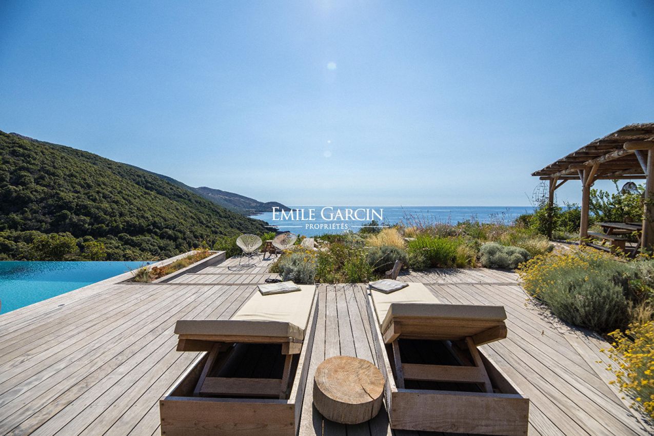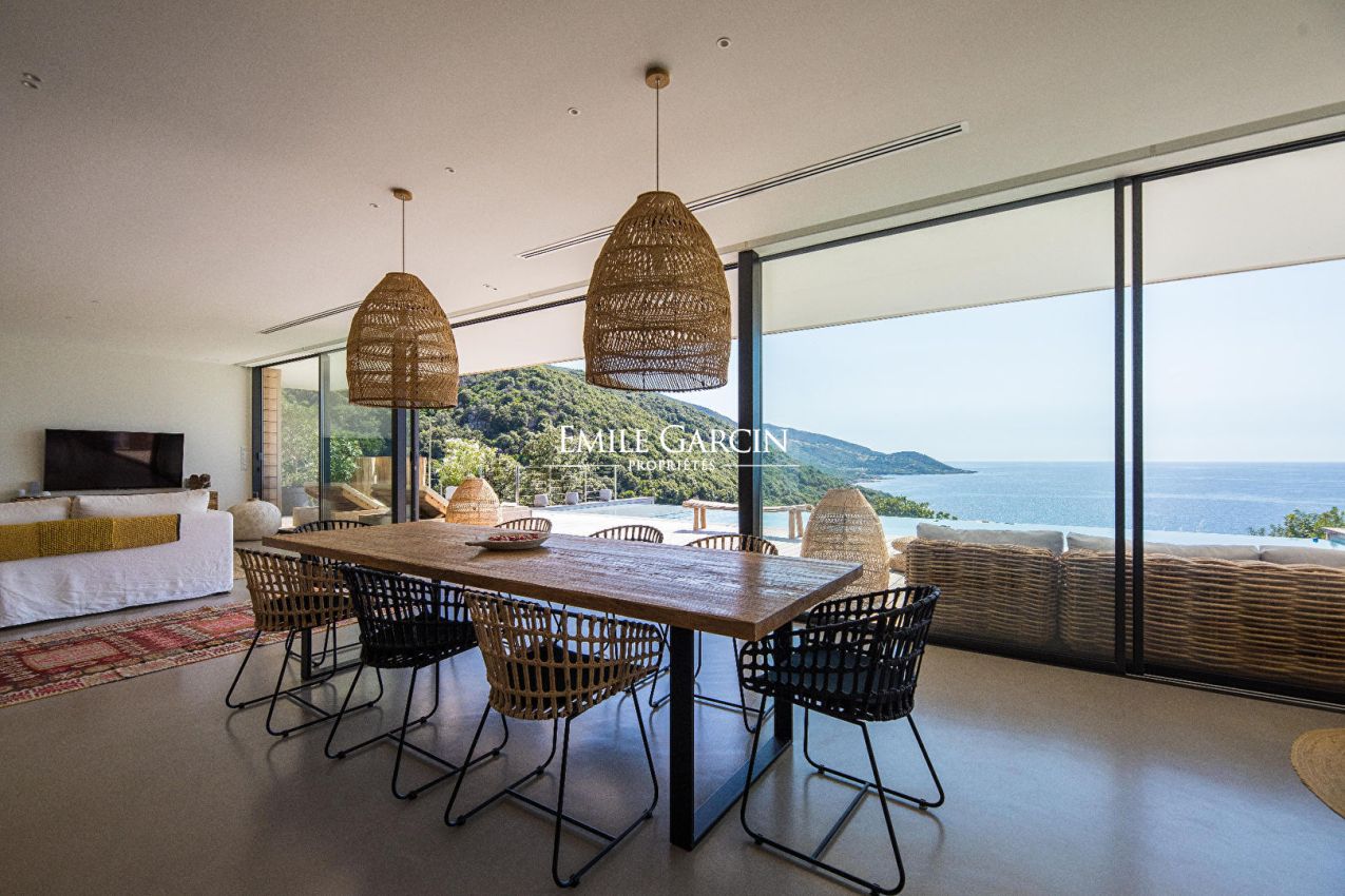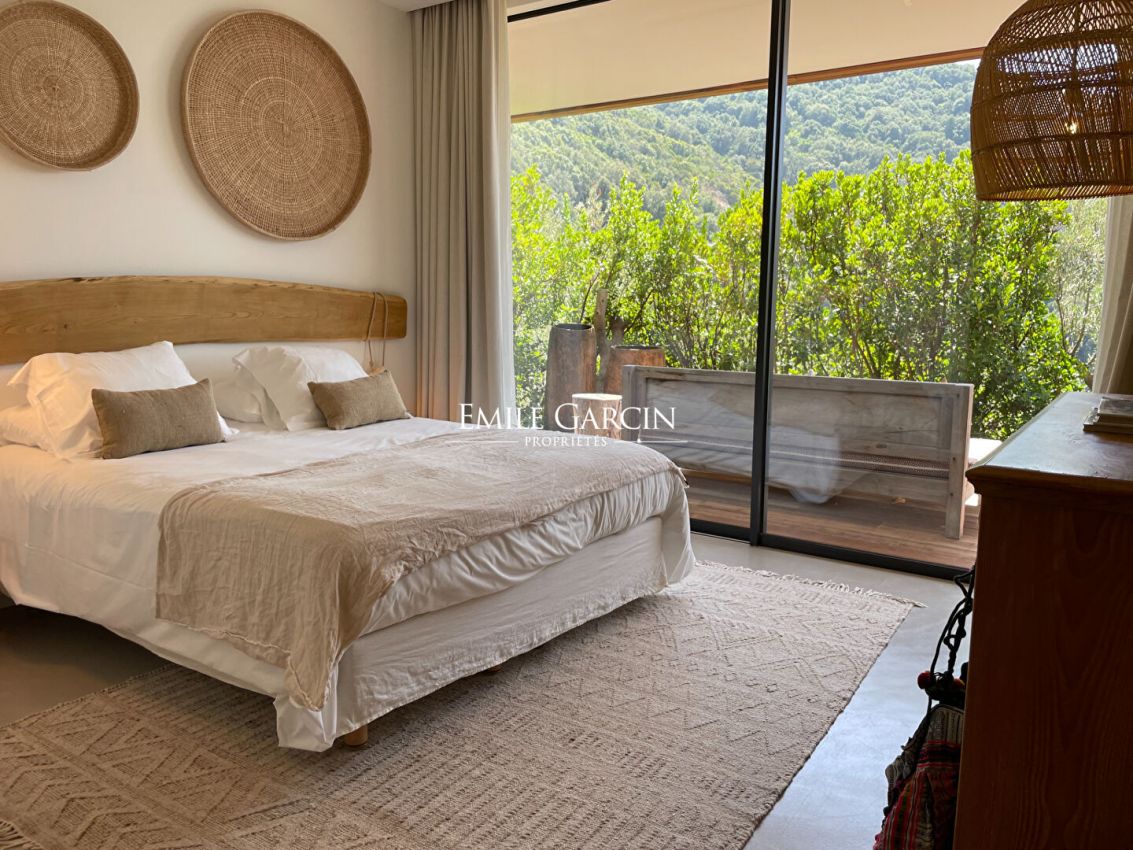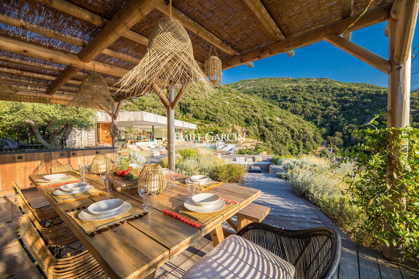 Magnificent villa located a few kilometres north of Ajaccio, in the middle of calm unspoiled natural surroundings. Sumptuous quiet beaches are accessible in around 10 minutes. 14 x 4 m heated infinity pool secured by an electric cover and equipped with an outdoor shower. The terrace surrounds the entire house, offering several intimate relaxation areas: large wooden sunbeds, a summer lounge area, an area to enjoy an aperitif facing the setting sun, and a fully equipped kitchen area (fridge, dishwasher, plancha). The seafront can be reached in 15 minutes via a footpath. Ajaccio Airport: 50 mins. Beachfront: 10 mins. Sagone: 20 mins. This single-level villa opens with a large corridor serving the bedrooms. The living room backs onto a wooden terrace with incredible panoramic views of the sea and the mountains. Inviting living room with fireplace, TV, lunch table, fully equipped open kitchen. Equipped utility room (2nd fridge, washing machine, dryer, etc.). Bedroom 1: double bed 160 cm (or 2 x 90 cm), shower room, toilet, independent access from the terrace. Bedroom 2: 160 cm double bed, shower room, toilet. Bedroom 2 (master bedroom): 160 cm double bed (or 2 x 90 cm), open bathroom (shower and separate WC), TV. Bedroom 4: 160 cm double bed, shower room, toilet, TV. All the bedrooms have access to the terrace.