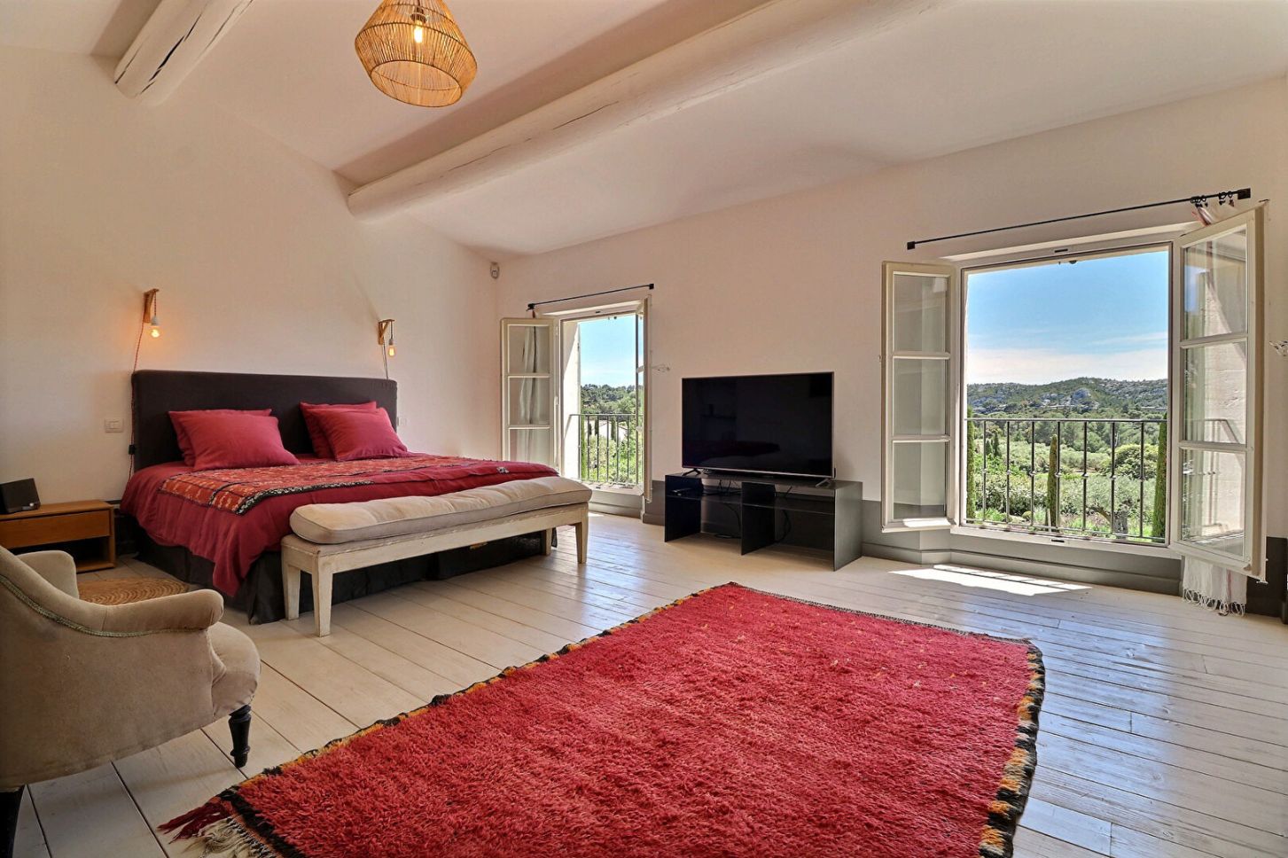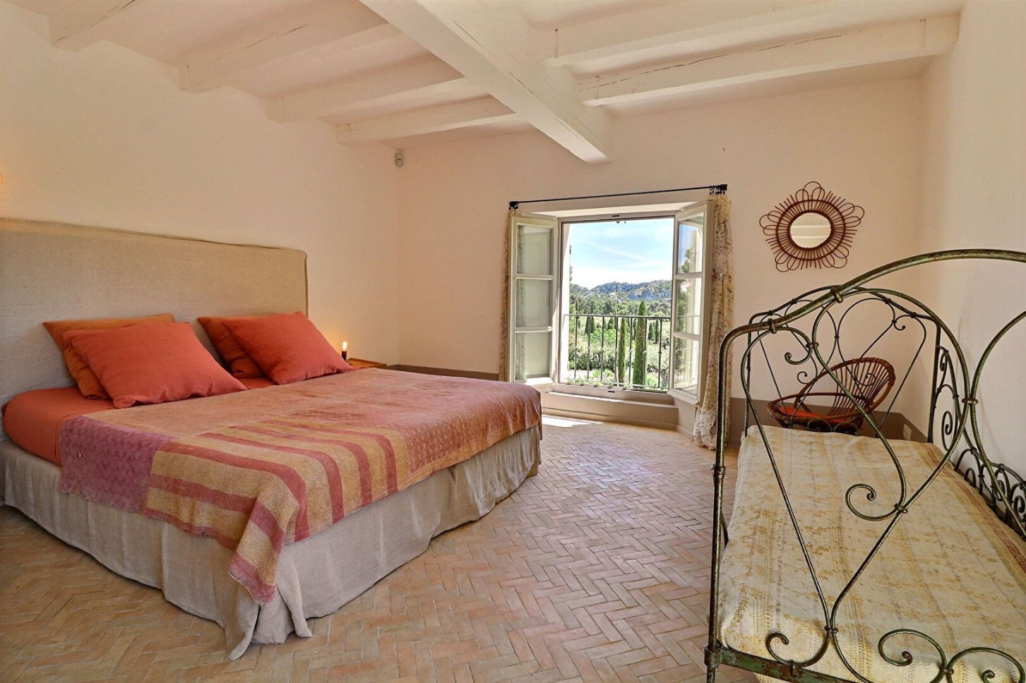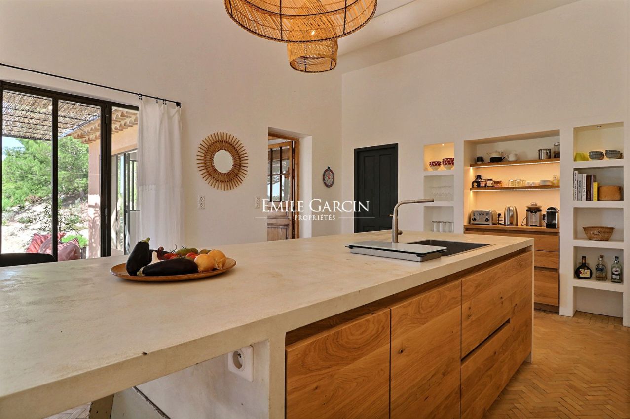 Magnificent Mas, tastefully decorated offering 7 air-conditioned bedrooms (including 4 outside the main house) and 7 bathrooms. Dining room, equipped kitchen and a large bright living room. The terrace and the heated swimming pool give us a panoramic view of the Alpilles.