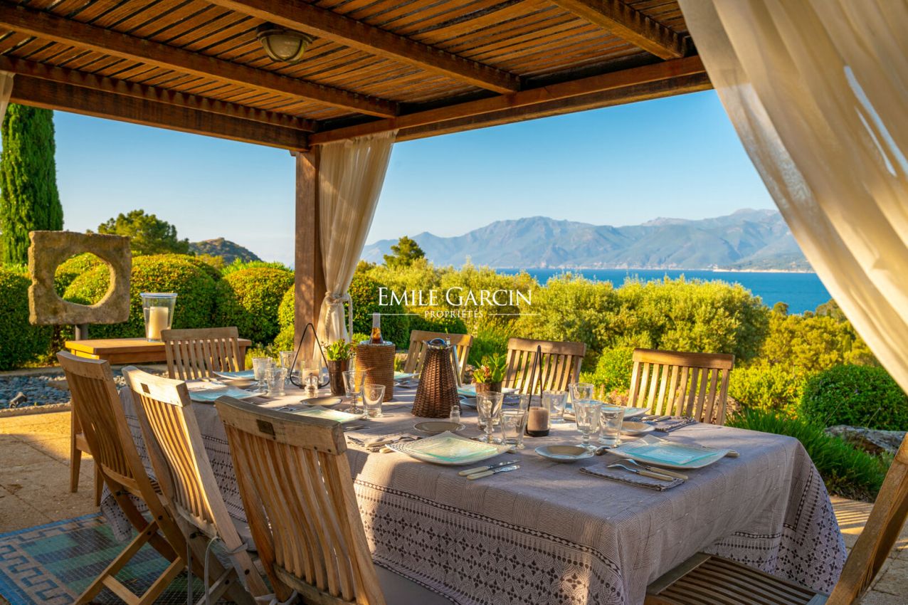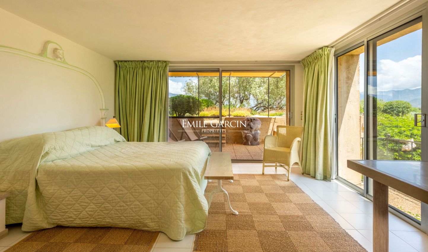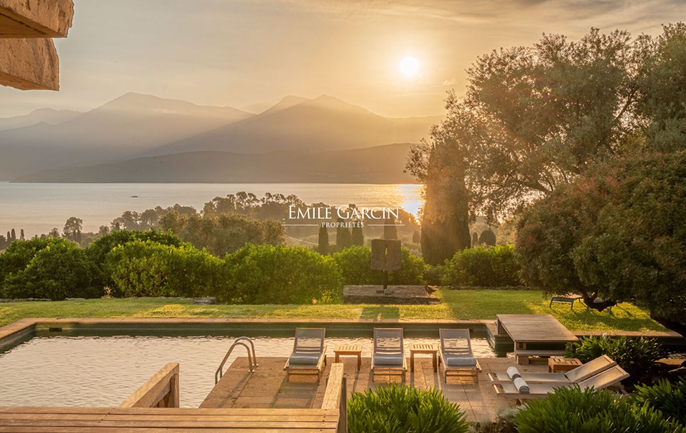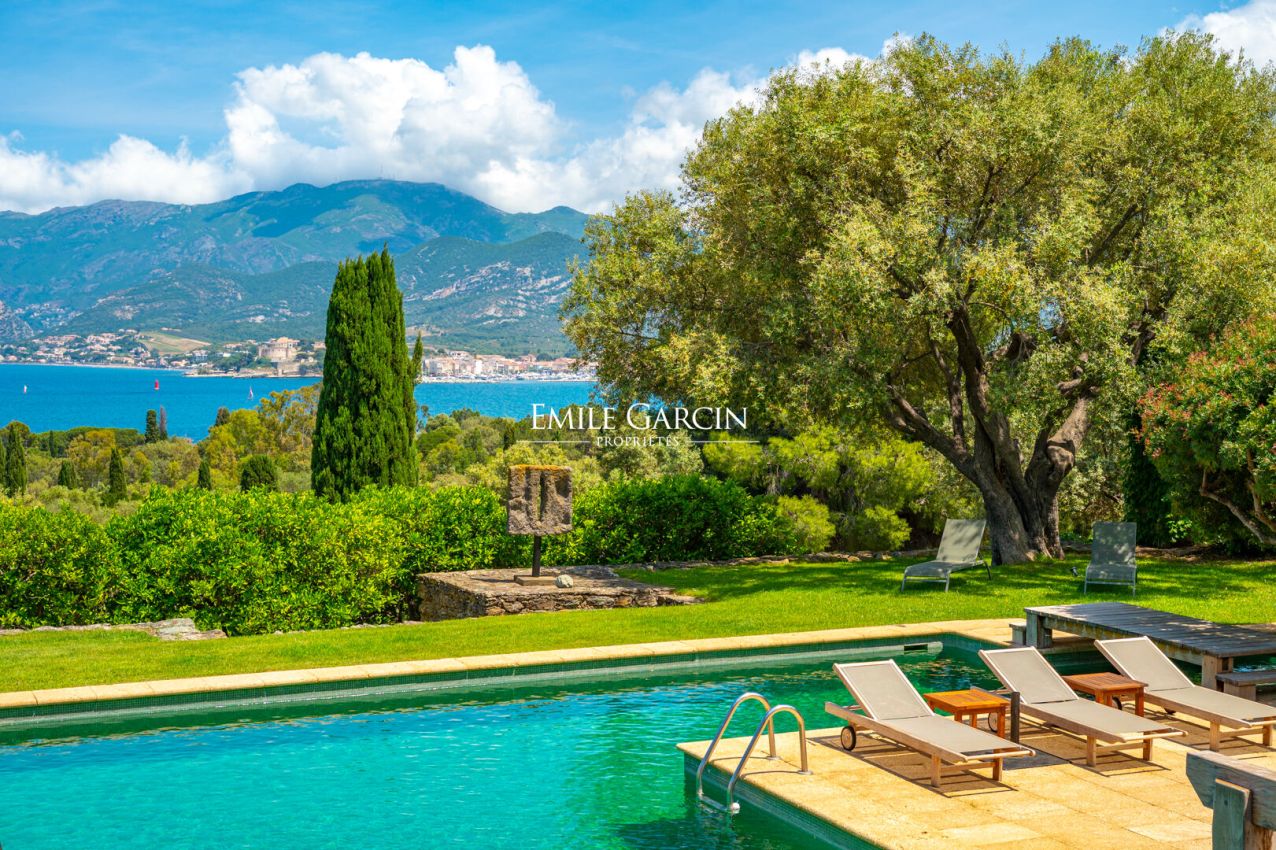 This magnificent property extends over 17 hectares of land and offers a unique view of the sea, the Gulf of Saint Florent, the village, its port and citadel, Cap Corse and the Agriates desert. Sea access in just 10 minutes on foot via a small road. The ideal setting for an excellent holiday with friends or family. 8 bedrooms, 7 bathrooms. All the bedrooms are air conditioned. Tennis court, large swimming pool of 235 sq.m. High quality services including an onsite chef, 7 days a week. Daily cleaning included.