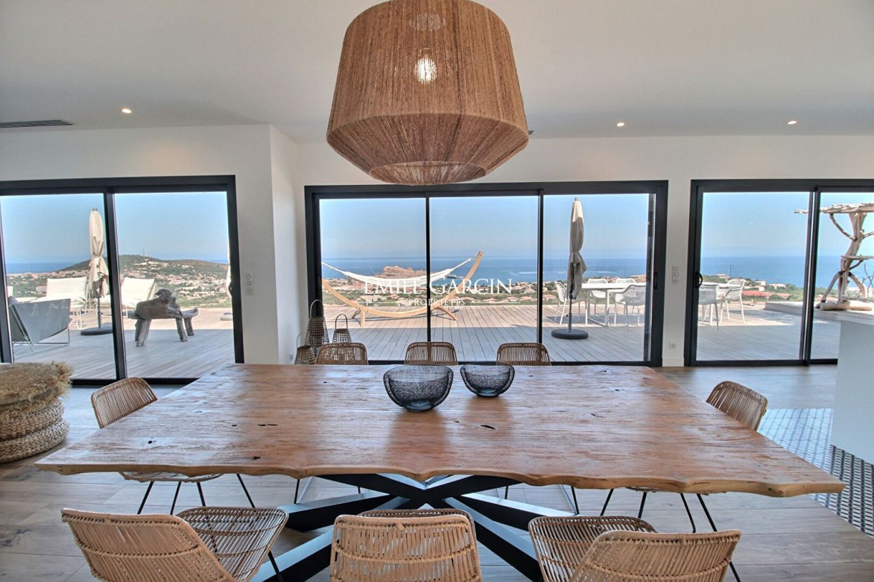 New-build property located on the hillside of Ile Rousse, less than 5 minutes from the beachfront and shops. It boasts an incredible view of the sea and the Pietra Islands. Fully air-conditioned. Pretty 11 x 4 m heated infinity swimming pool with alarm system with a superb sea view. Large seaview terrace with outdoor lounge, hammock and a large table for lunch. Petanque area. Fitness room (treadmill, bike, crosstrainer, TV). Wireless internet. Weber gas plancha. The villa is spread over several levels. The first floor presents a large, very bright living room, a fully equipped open kitchen, a lounge area with TV, all backing onto a beautiful furnished wooden terrace offering a stunning sea view. Bedroom 1: 2 x 80 cm beds (or 1 x 160 cm bed), bathroom with shower and toilet, dressing room, TV, safe, outdoor shower with sea view. This room has terrace access. There are three other bedrooms on the lower level: Bedroom 2: 2 x 80 cm beds (or 1 x 160 cm bed), bathroom with shower and toilet, dressing room, TV. Bedroom 3: 2 x 80 cm beds (or 1 x 160 cm bed), bathroom with shower and toilet, dressing room, TV. Bedroom 4 (master bedroom): 160 cm bed, bathroom with bathtub and toilet, dressing room, TV. All the bedrooms have access to a furnished terrace. Cellar with washing machine and dryer.