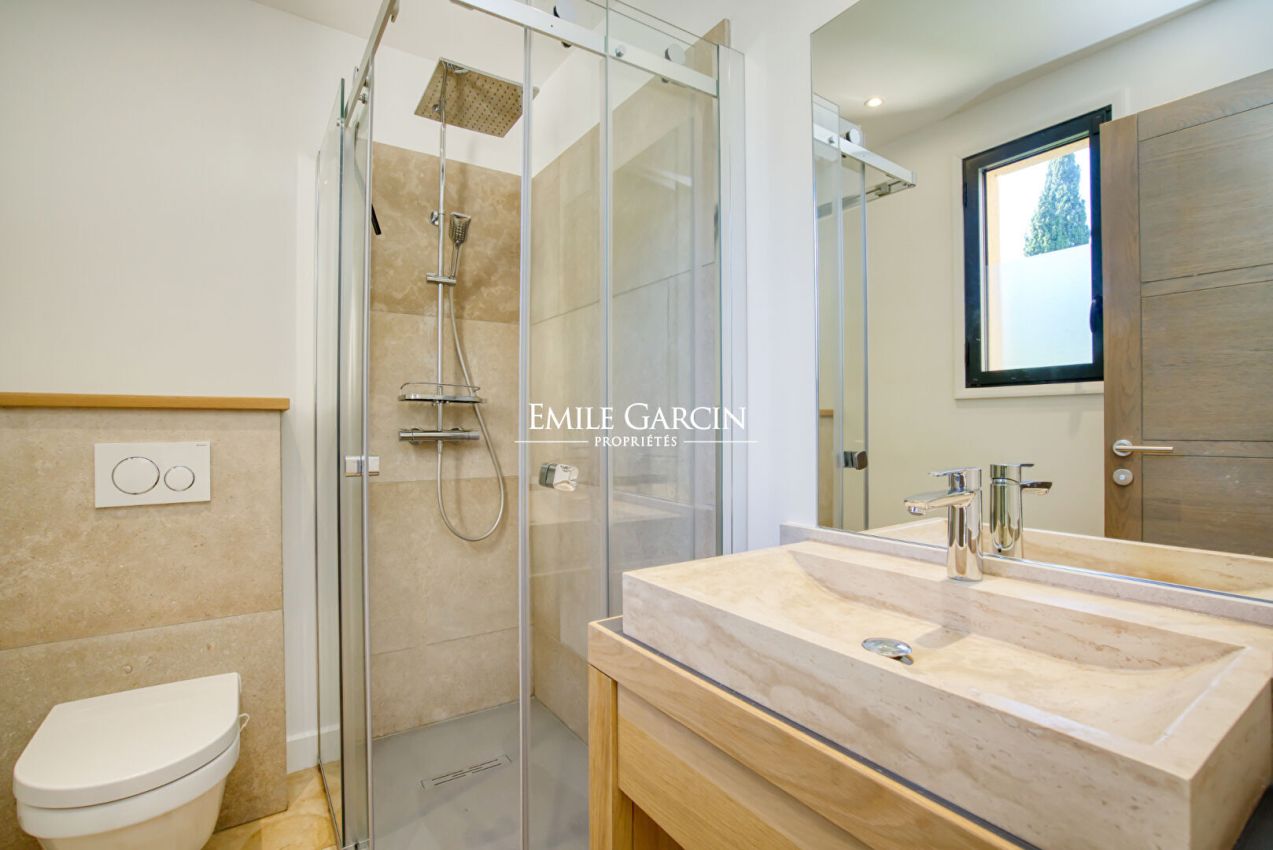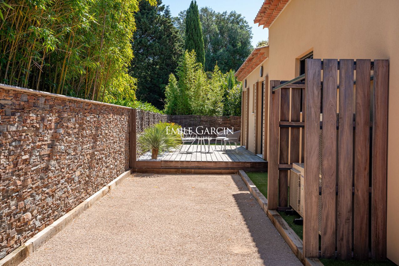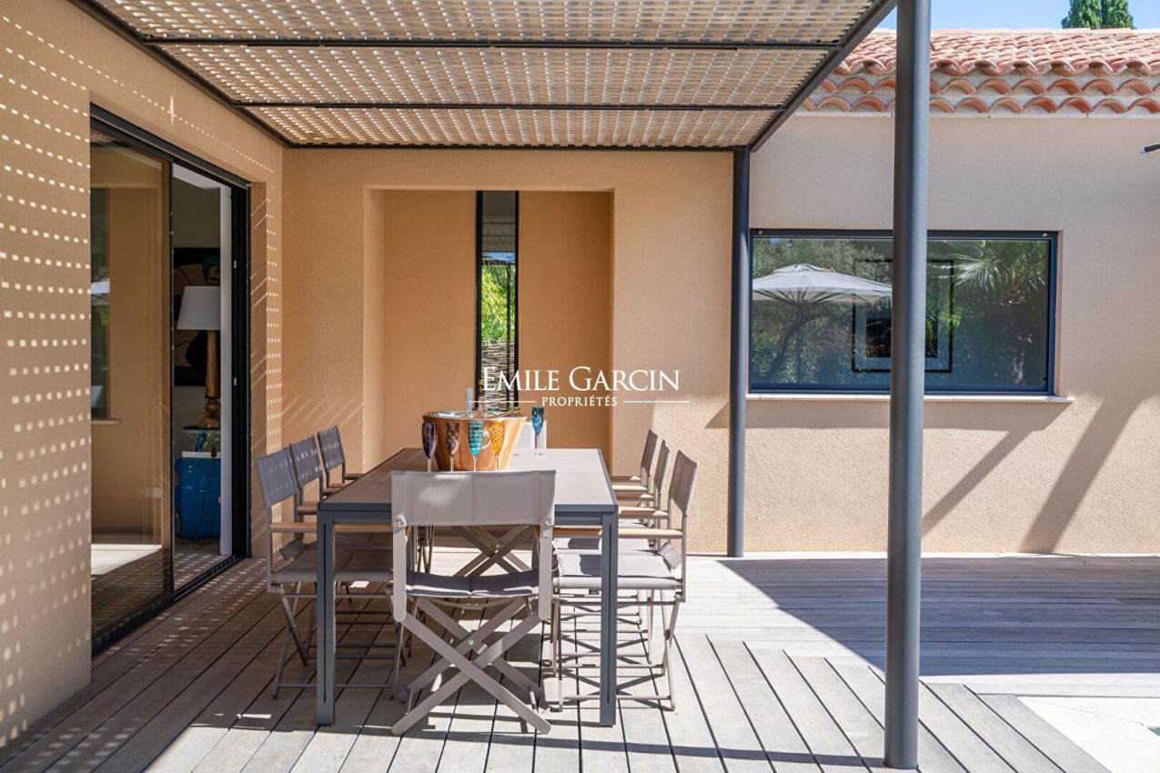 Modern villa. Recently built and presenting all modern comforts. Carefully decorated with pieces of art. 4 bedrooms, 4 bathrooms. Wine cellar. Secure heated swimming pool. Petanque area. Double garage. Car park. Registration number: 83068 001369 PK