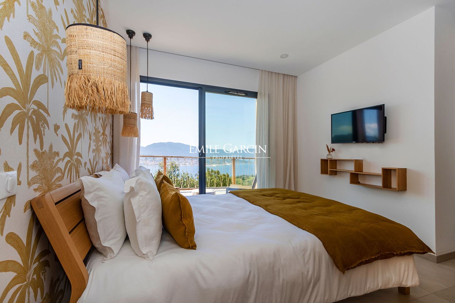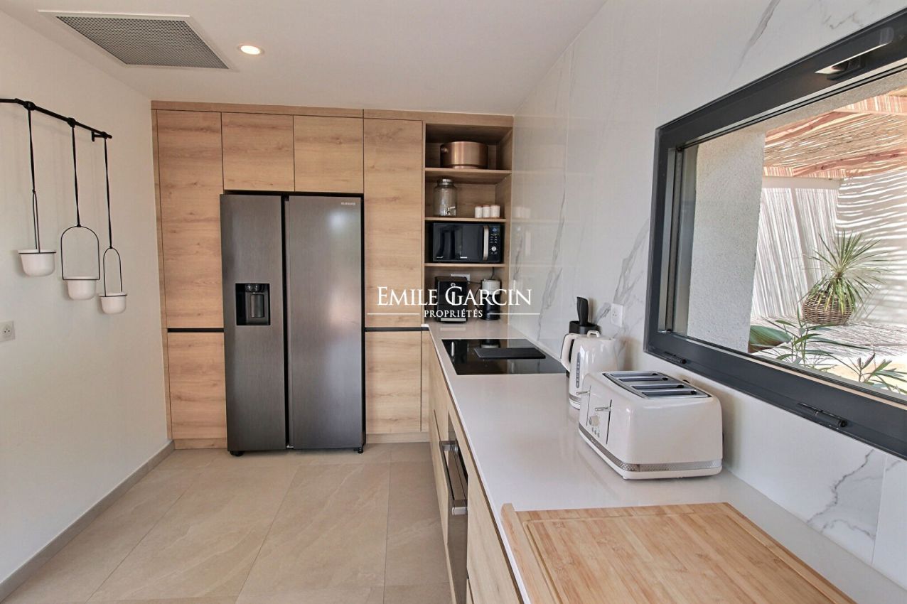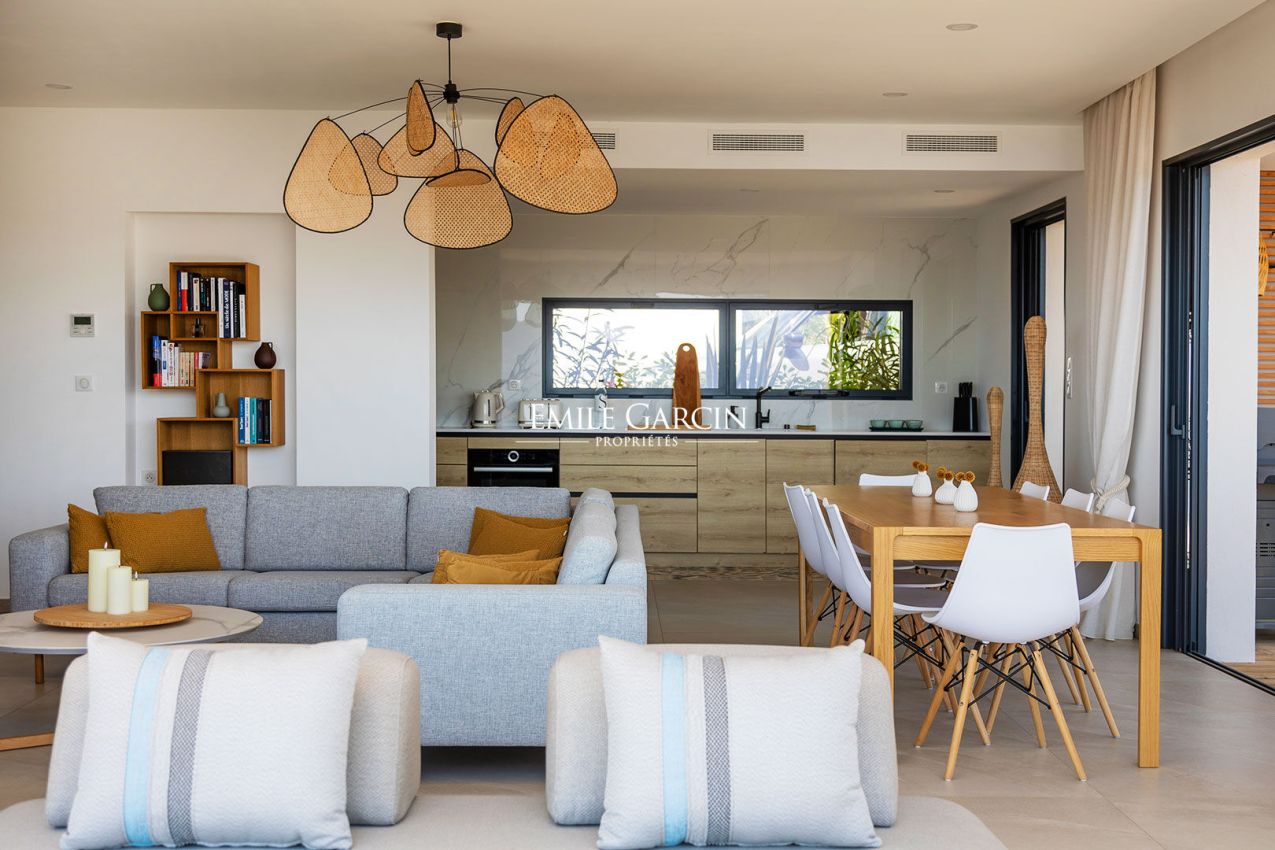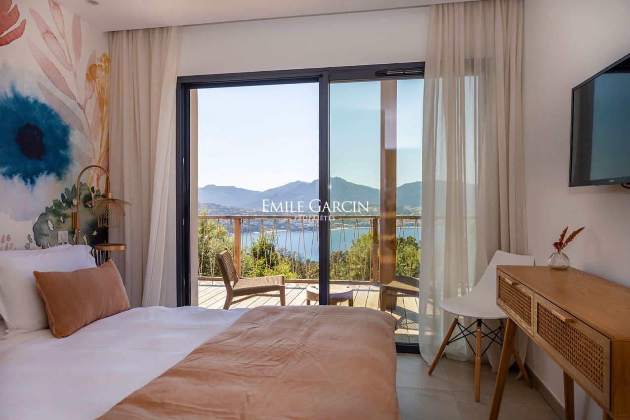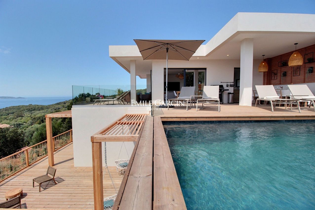 Beautiful designer villa of 230 sq.m offering 4 bedrooms and 4 bathrooms in a contemporary style overlooking the sea. Located only a few minutes from Propriano and its surrounding beaches, the ideal setting to enjoy your holidays. Fully air-conditioned. Equipped with a 7 x 3m heated swimming pool (secured by roller cover). Large wooden terrace extending the living rooms and offering an incredible panoramic view of the sea on both sides of the house. Access to a gym (treadmill, cross trainer, exercise bike) equipped with a shower and WC. Figari Airport: 1h10. Ajaccio Airport: 1 hour. Propriano town centre: 10 mins. Beach: 5 mins. Cleaning: 3 hours on Wednesdays and end-of-stay cleaning included in the cost of your stay.