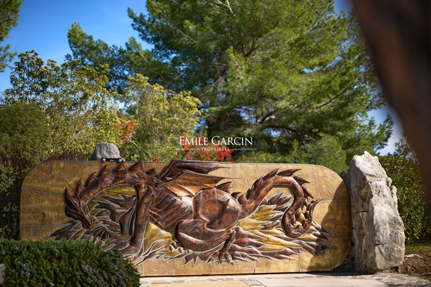 Spanning 280 m² of living space, extended by 250 m² of terraces on a landscaped 4,900 m² park, this living architectural masterpiece boldly combines raw and noble materials: sun-kissed stone, radiant marble, wrought iron, handcrafted ceramics, luminous glass, and finely sculpted copper. Every detail, conceived as an extension of Couëlle's imagination, unveils a unique visual and sensory poetry.