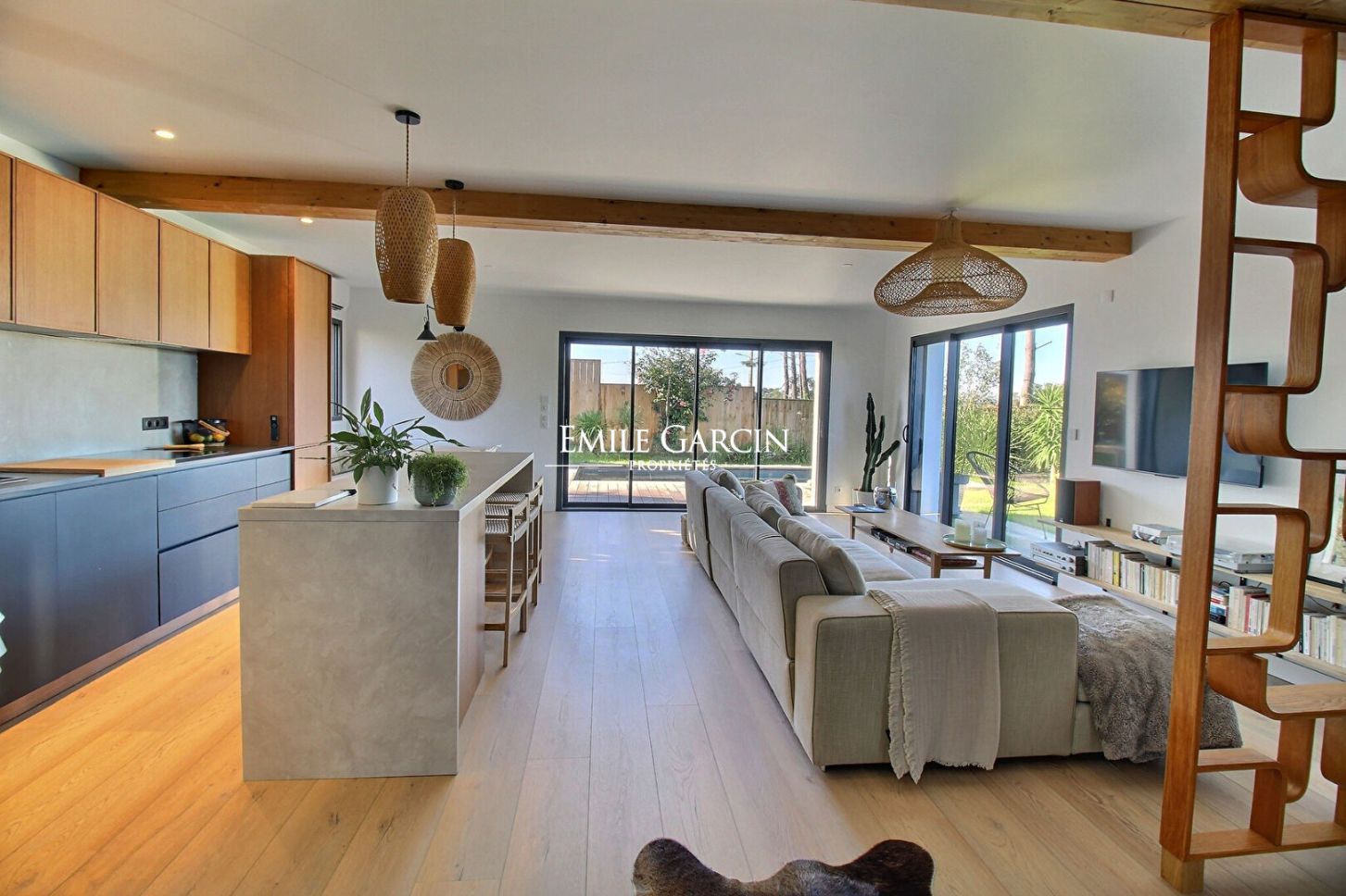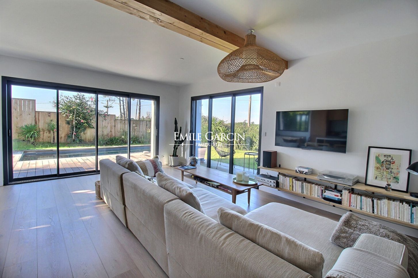 Located on the edge of the Pignada forest in Anglet, this brand new house offers peaceful surroundings within easy reach of the local beaches, shops and transport connections. Spread over two levels, it presents more than 150 sq.m of living area. The ground floor houses the master suite, while upstairs there are three bedrooms including two suites and a separate WC. The living area is bright and backs onto the terrace and swimming pool; it comprises a lounge, a dining room and a modern kitchen. The house is equipped with reversible air conditioning and a home automation system. It is ideal for anyone looking for both comfort and tranquility in close proximity with nature.