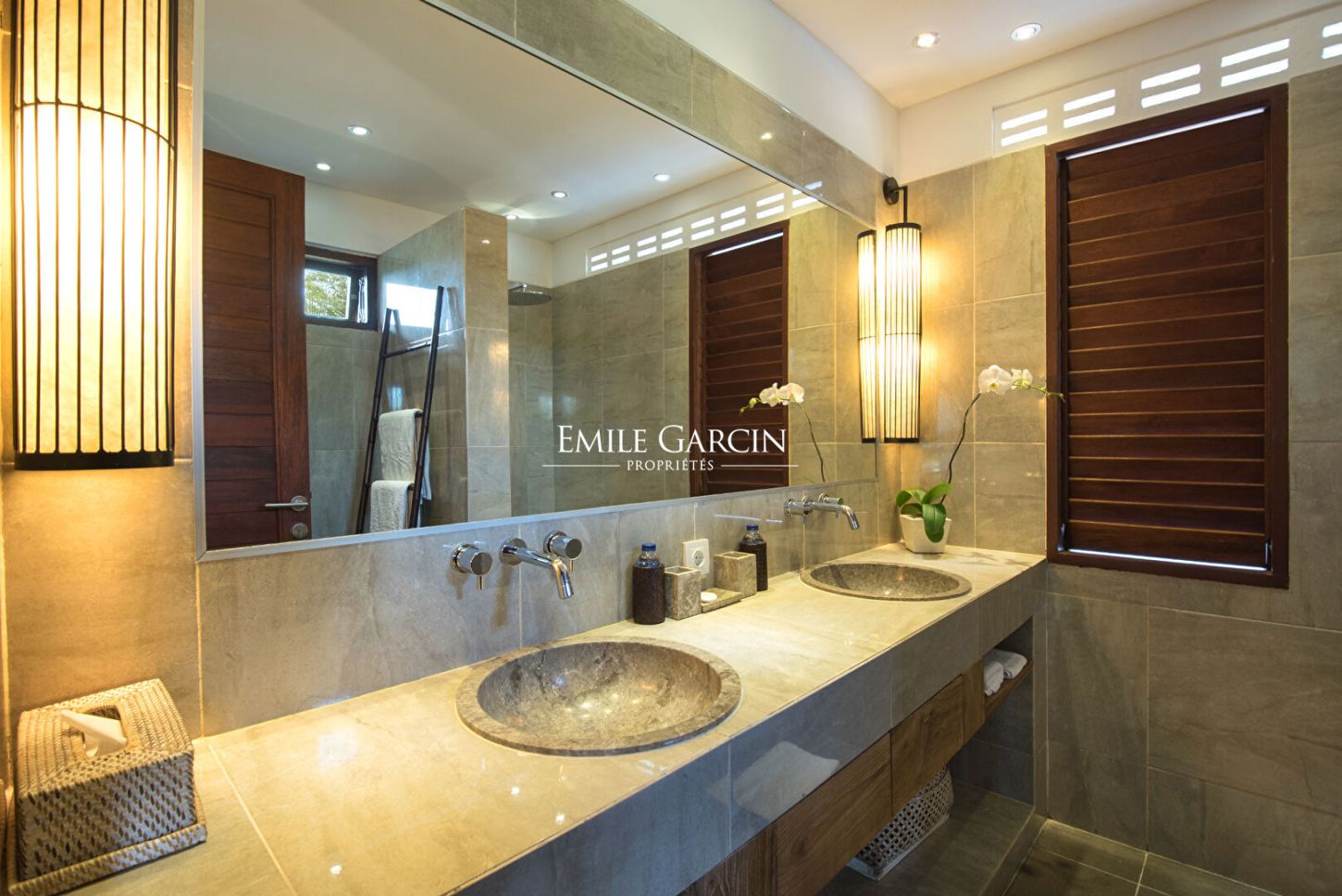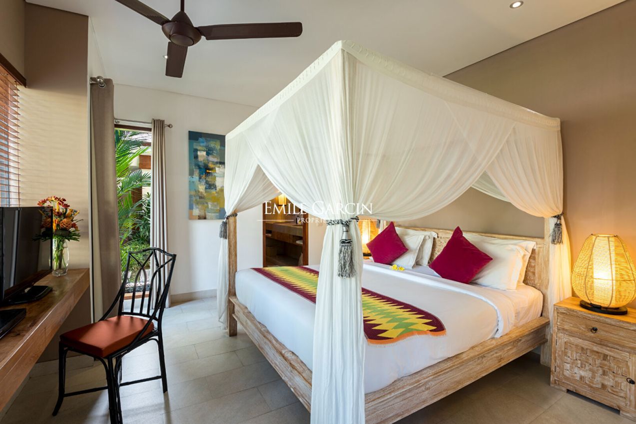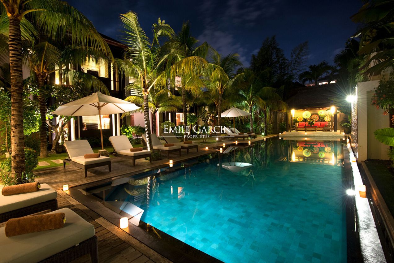 Nestled in the heart of a lush estate, this villa offers a tranquil tropical haven. Inside you will find refined decoration and attentive staff always ready to help you. The serene ambiance, with its welcoming garden and natural light, creates the ideal setting for a relaxing stay in Bali. With its 6 bedrooms, 6 bathrooms and a 16 meter swimming pool, the property offers ample space to relax and enjoy. The living room opens harmoniously onto the garden with its comfortable sofas and classic Javanese armchairs. At the rear of the living room, a charming walled garden with a lotus pond adds a touch of charm to the whole. **Available from 4 bedrooms.