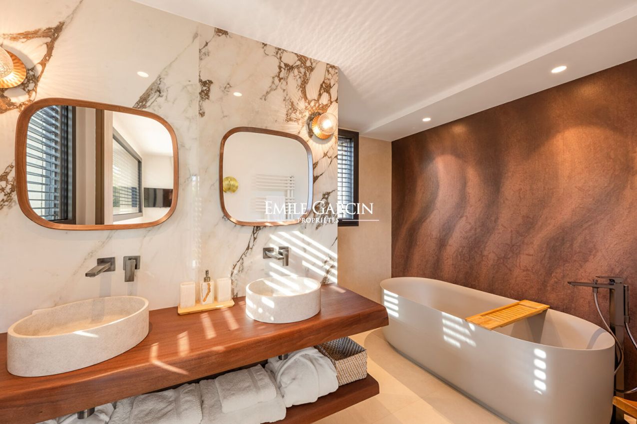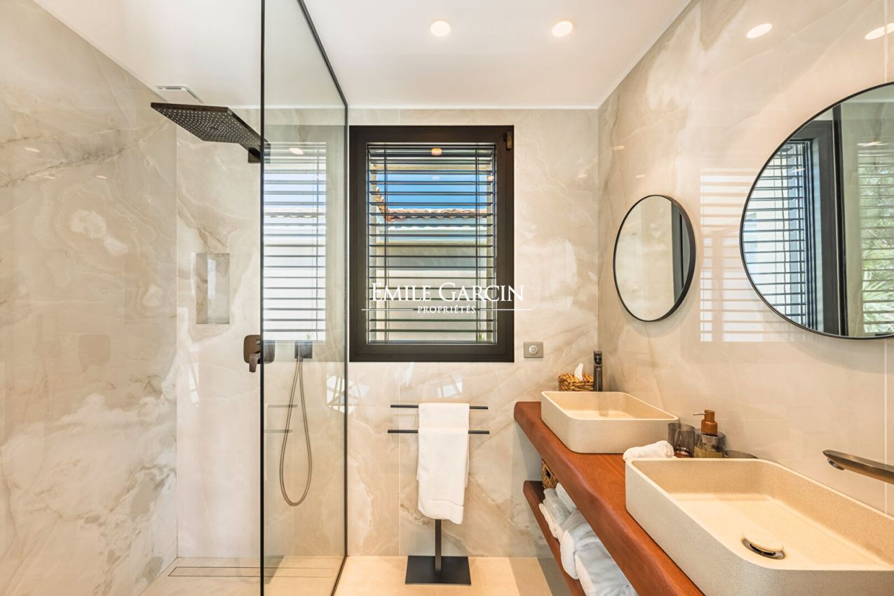 Discover this sumptuous 500 sqm villa, ideally located a few minutes walk from the center of Saint-Tropez, in a secure and exclusive domain. This property offers many amenities for an unforgettable stay, combining comfort, elegance and entertainment. With its 7 bedrooms and 7 bathrooms, this spacious villa is perfect for welcoming family and friends. Enjoy high-end services: cinema room, gym, games room, as well as a vast outdoor space designed for relaxation and leisure. Its 4x14 meter swimming pool, its pool house with summer kitchen, its pétanque court and its ping-pong table complete this villa. Registration number: 83119 006635 KA