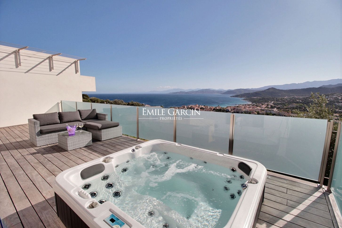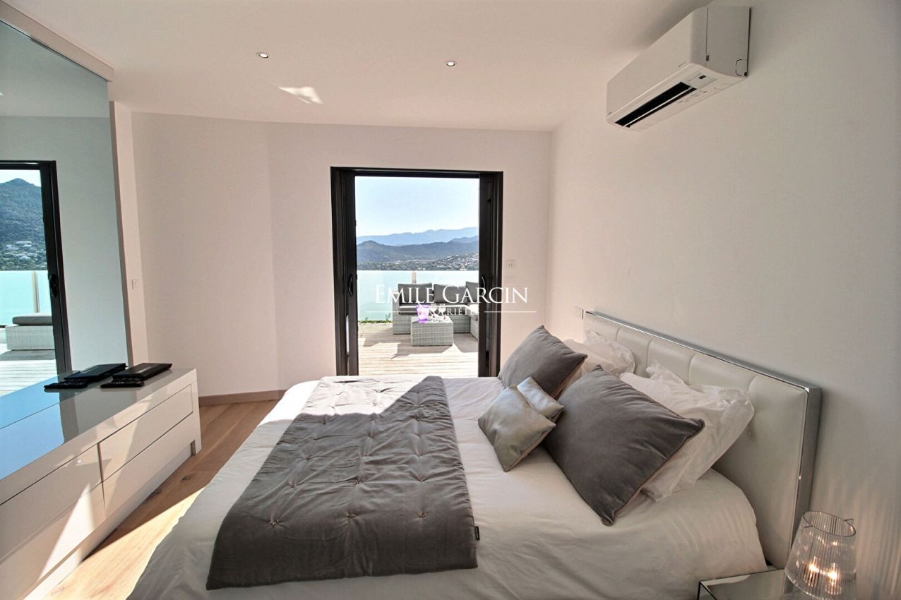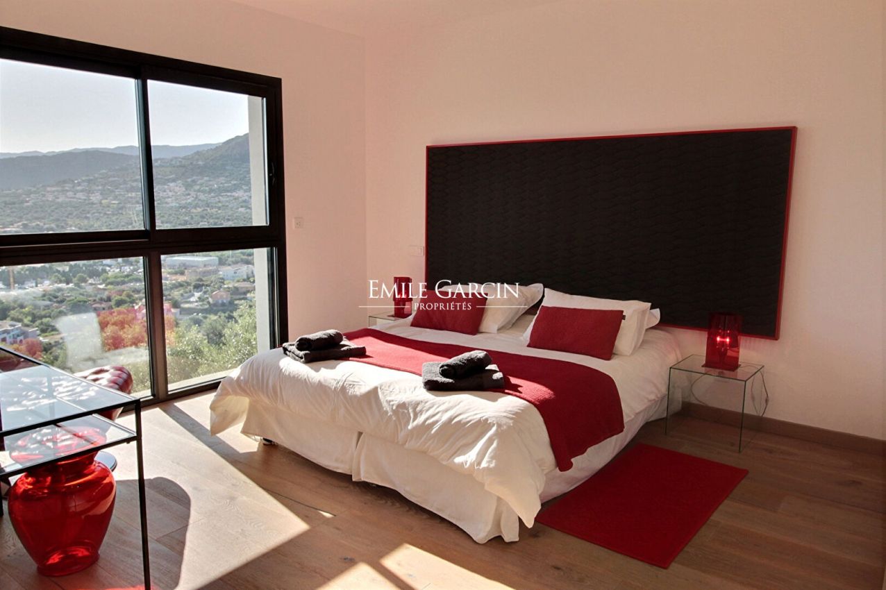A stunning contemporary villa located in the upper reaches of the seaside city of Ile Rousse, the Villa Sopra Mare boasts exceptional views of the city and the Cap Corse. With its 5 bedrooms and 5 bathrooms, it can accommodate up to 10 people. Fully air-conditioned, fully equipped, heated infinity pool. Just a 15-minute walk from the town and beaches of Ile Rousse.