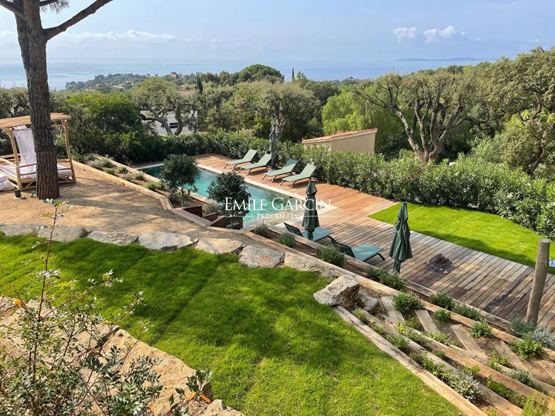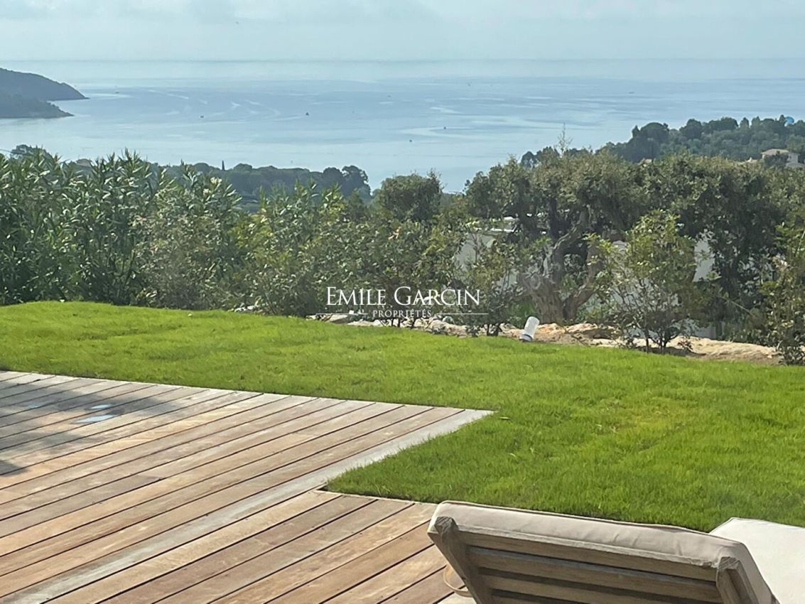 In a private estate in the hills above Gigaro, this recently built villa for rent boasts exceptional panoramic sea views and a peaceful, sought-after setting.