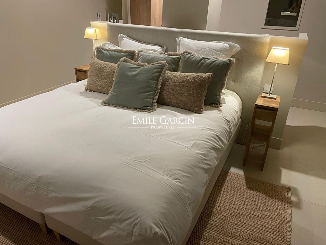 An outdoor kitchen is also included. An 11 x 5 meter swimming pool completes the amenities of this modern villa, ideal for holidays with family or friends on the French Riviera.