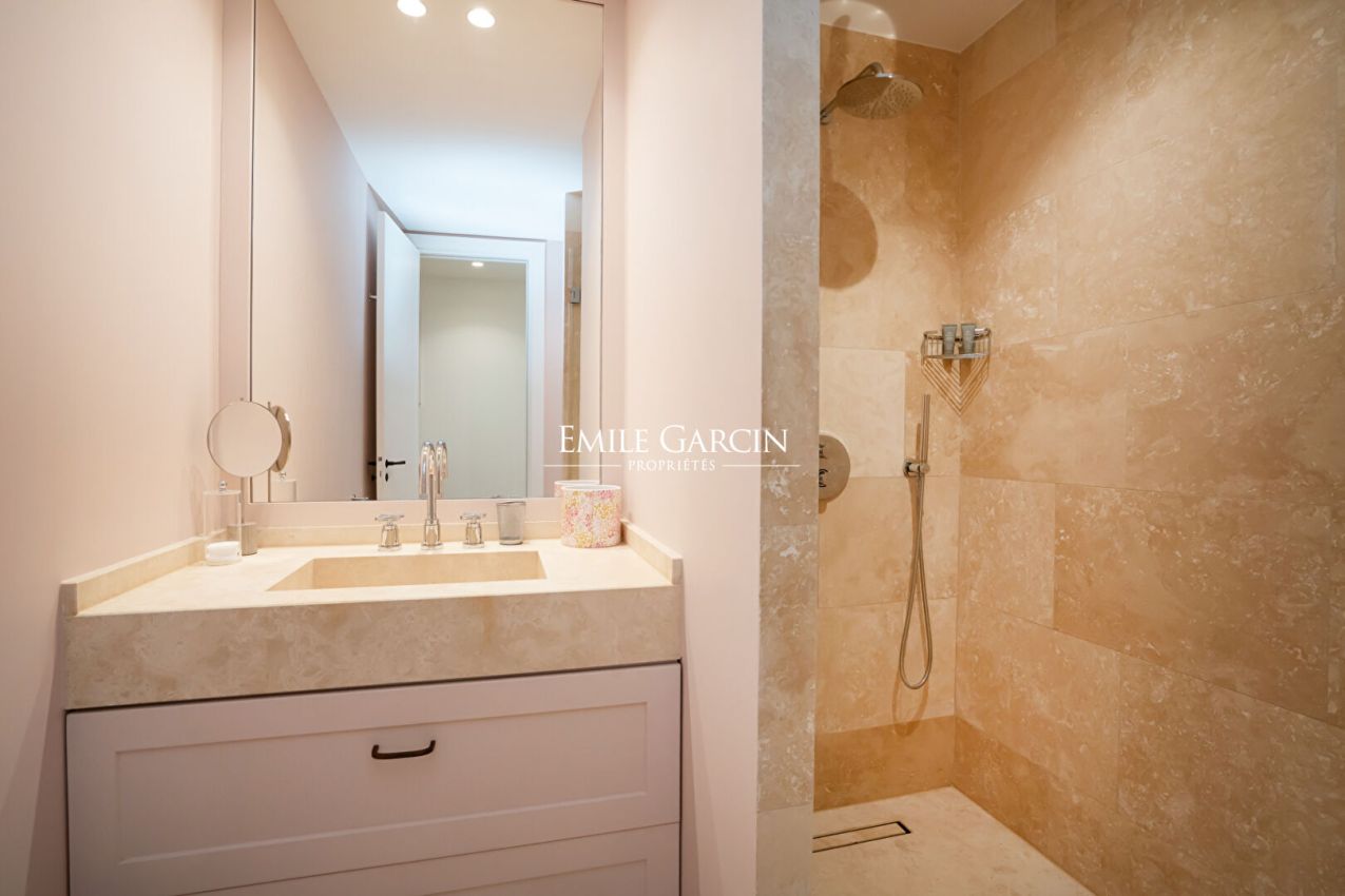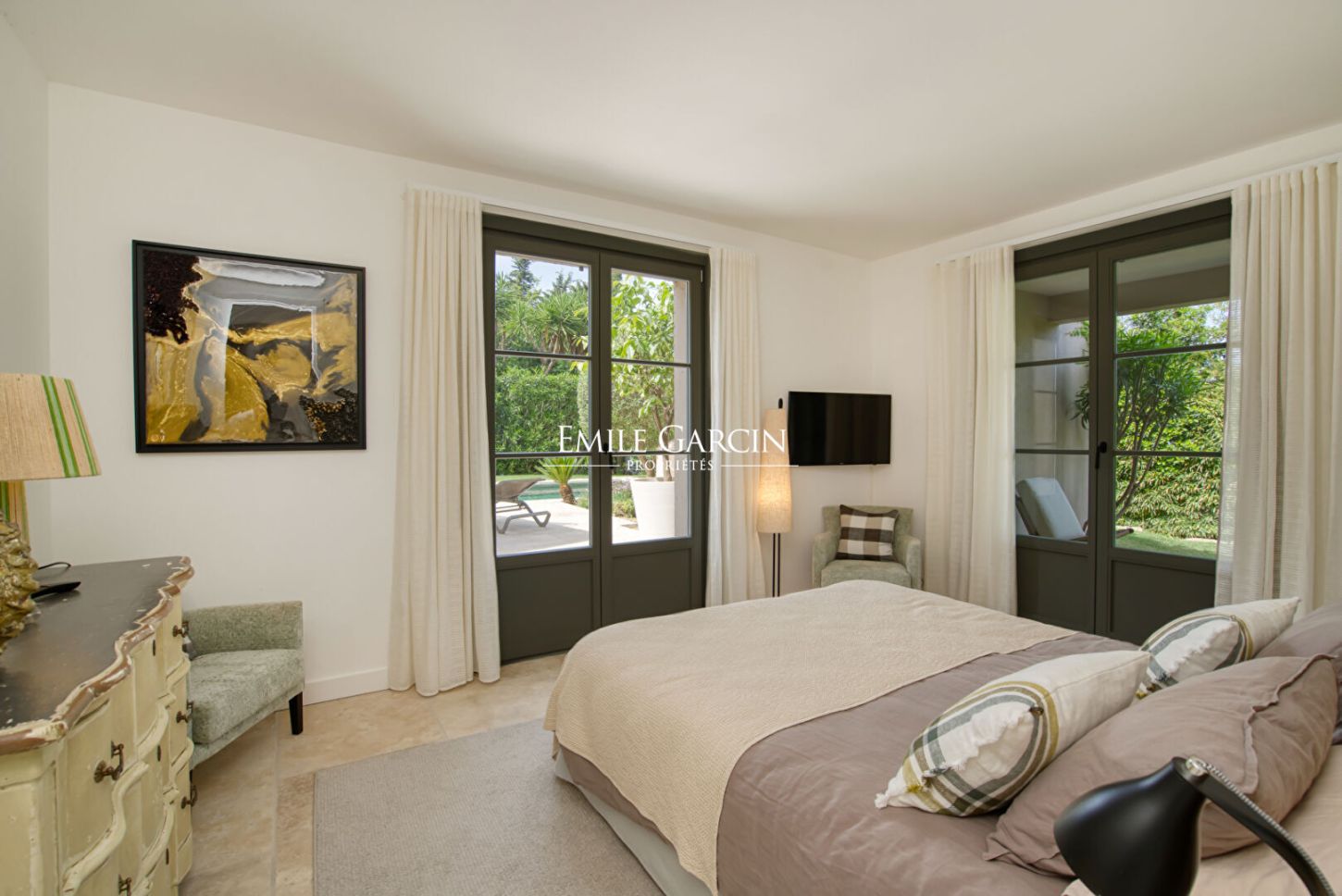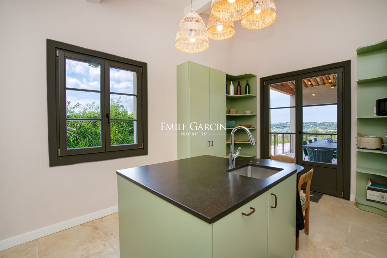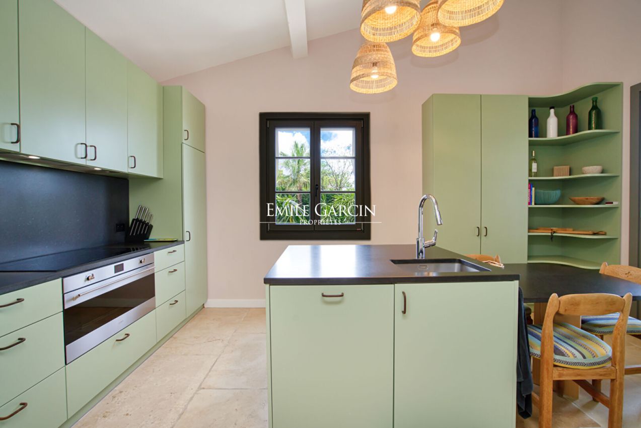 Between the legendary village of Saint-Tropez and the sunny beaches of Pampelonne, this elegant villa of approximately 220 sqm nestles in the heart of a 1,200 sqm landscaped garden. It offers five en suite bedrooms, a 15 x 4 meter heated swimming pool, and a sea view over the Baie des Caroubiers.