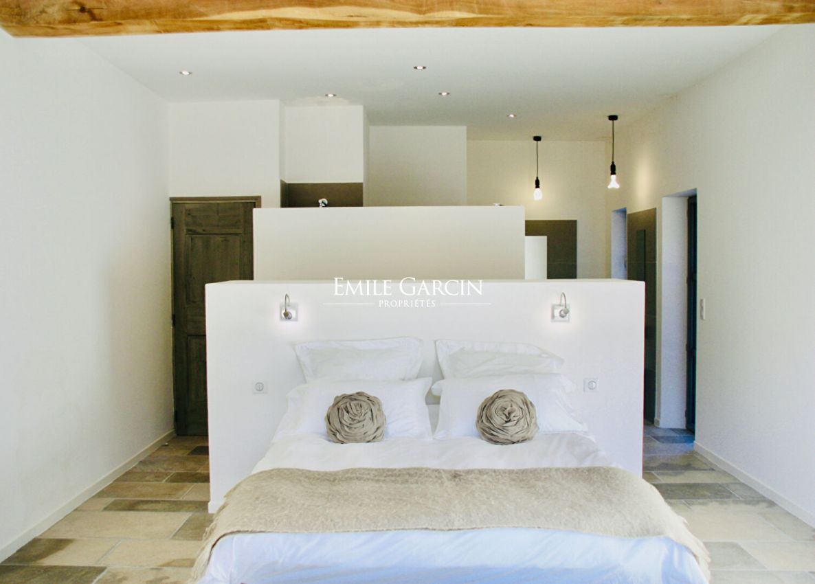 Le Mas la Roseraie is an oasis of Provencal serenity nestling in the heart of the Luberon, in Saint Saturnin lès Apt. This stone farmhouse presents 350 sq.m of authentic and refined living area in a stunning setting, ideal for an unforgettable summer vacation. Designed to accommodate up to 14 people, it consists of six bedrooms including a suite and a comfortable dormitory for young children. Each bedroom has a private bathroom, guaranteeing privacy and comfort. On the ground floor, there is a fully equipped modern kitchen, a large living room bathed in light and a welcoming dining room. The garden, decorated with oaks, pines, lavender and white rose bushes, envelops the property and imbues it with calm. The 11 x 5 m swimming pool is secured by an electric shutter and guardrails. A small outbuilding has been converted into an independent apartment, creating an additional space in which to enjoy the tranquility of the surroundings. The property is located near the typical villages of Roussillon and Gordes, renowned for their picturesque streets, Provencal markets and colourful landscapes. Nature and hiking enthusiasts can take advantage of the numerous trails crossing the Luberon. The property is located an hour from the Avignon TGV station and Marseille international airport. Please contact us directly to request further information.