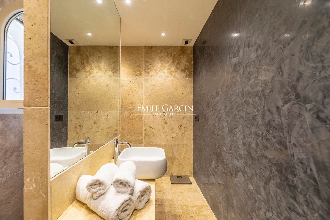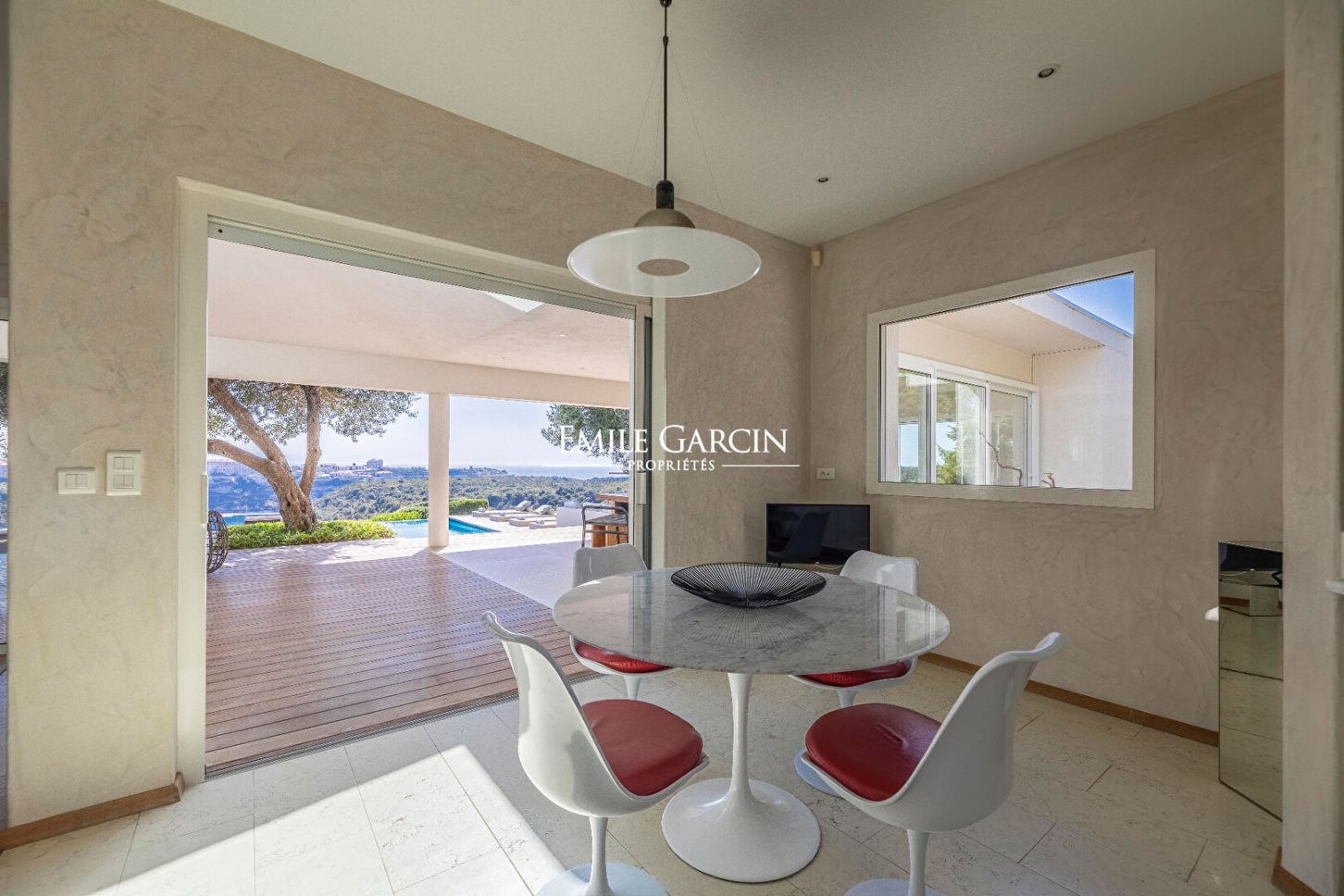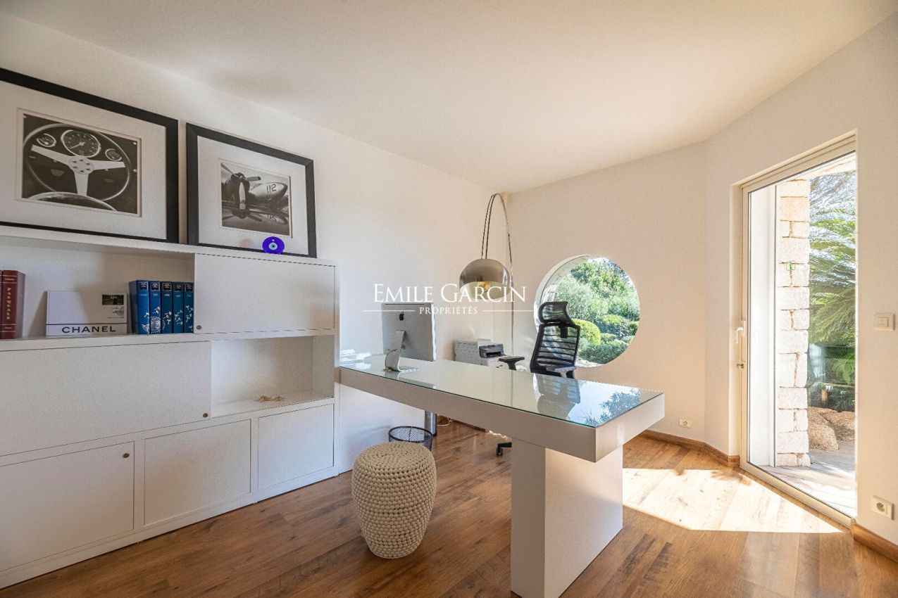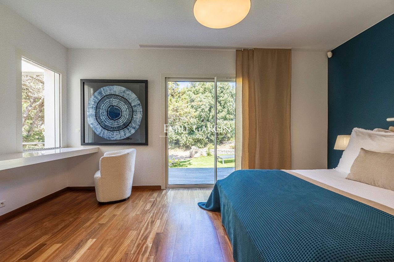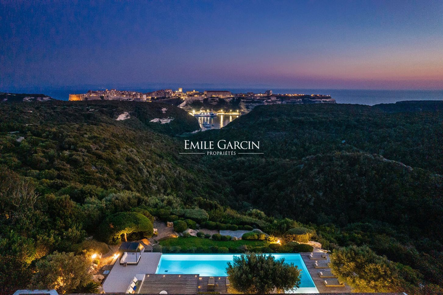 This magnificent 350 sq.m villa boasts an exceptional view of the port and citadel of Bonifacio. Sitting on 3000 sq.m of land planted with Mediterranean vegetation just a few minutes from the town centre and the beaches, it is a veritable invitation to rest and relaxation. The 18 x 4m heated infinity pool is equipped with counter-current swimming system. It is surrounded by a large wooden terrace of 250 sq.m with three shady lounge areas. There is an al fresco dining area with a plancha and a large wooden table for lunch in the shade. It can accommodate 8 people in great comfort across 4 air conditioned bedrooms and 4 bathrooms. The ideal setting to discover the south of Corsica and its superb beaches. Beach: 10/15 mins. Figari Airport: 20 mins. Bonifacio: 5 mins (car), 15 mins (walking). Sperone golf course: 10 mins. This single-level villa presents a double living room backing onto a beautiful wooden terrace with breathtaking views of Bonifacio. It includes a TV area and a lounge area separated by a fireplace, as well as a dining room. There is also a fully equipped open kitchen. The first (master) bedroom is equipped with a 160 cm double bed, a full bathroom (shower, bathtub), a separate WC, a large dressing room, a TV and a small private terrace. The other three bedrooms are located on the other side of the villa. These bedrooms are equipped with 160 cm beds, TV sets and a private bathroom with toilet. All the bedrooms have a terrace and overlook the garden. They are all air conditioned.