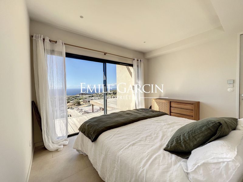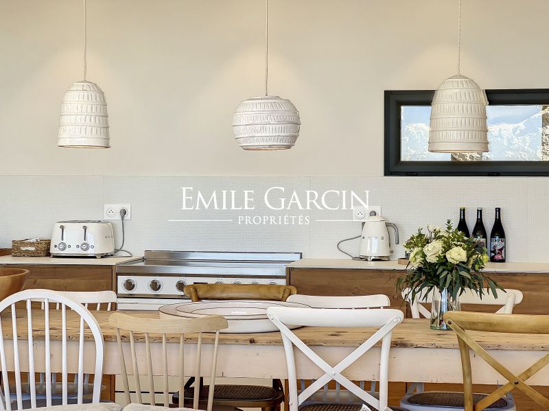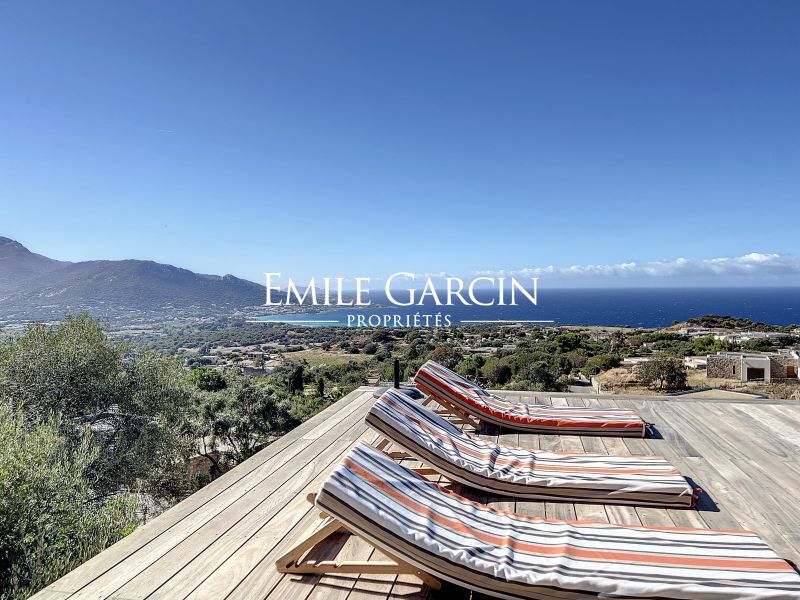 Modern new-build villa. Fully air-conditioned. 4 bedrooms and 4 bathrooms. Located on the hillside in Algajola Bay, the property overlooks the sea and enjoys a stunning panoramic view and magnificent sunsets. Heated swimming pool (10 x 3m) secured by an electric cover and surrounded by decking equipped with deckchairs. The perfect setting to enjoy views of the seafront and mountains. Cleaning services included at set times. Calvi Airport: 20 mins. Ile-Rousse: 10 mins. Algajola and Ghjunchitu beaches: 10 mins.