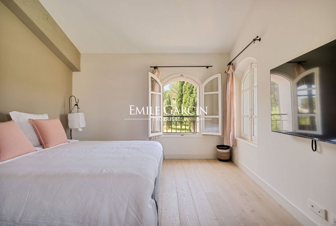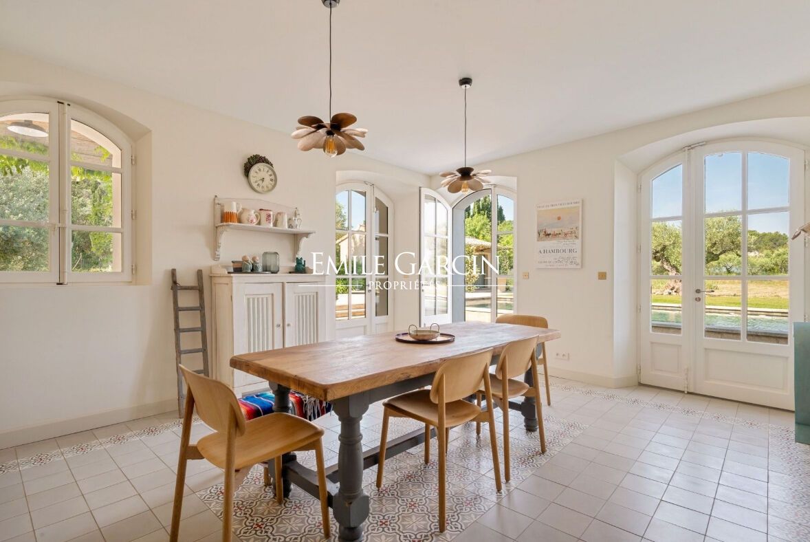 Lovely Provencal stone farmhouse located 5 minutes from the centre of Saint-Rémy-de-Provence. This bright air-conditioned property will make the ideal setting for your holidays among family or friends. It includes a bedroom with shower room on the ground floor, as well as 4 bedrooms and 3 bathrooms upstairs. The house sits on 16,800 sq.m of private land equipped with a large heated swimming pool (16 x 9 m), a terrace with dining table for up to 10 guests a pool house and a BBQ area. Avignon TGV station: 30 minutes; Marseille Provence airport: 1 hour.