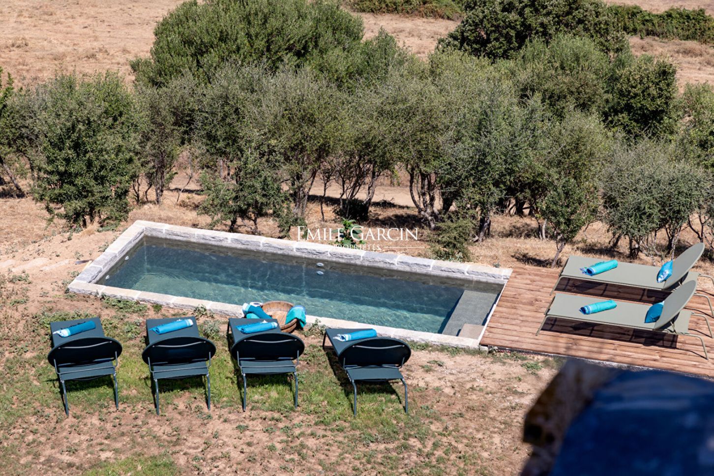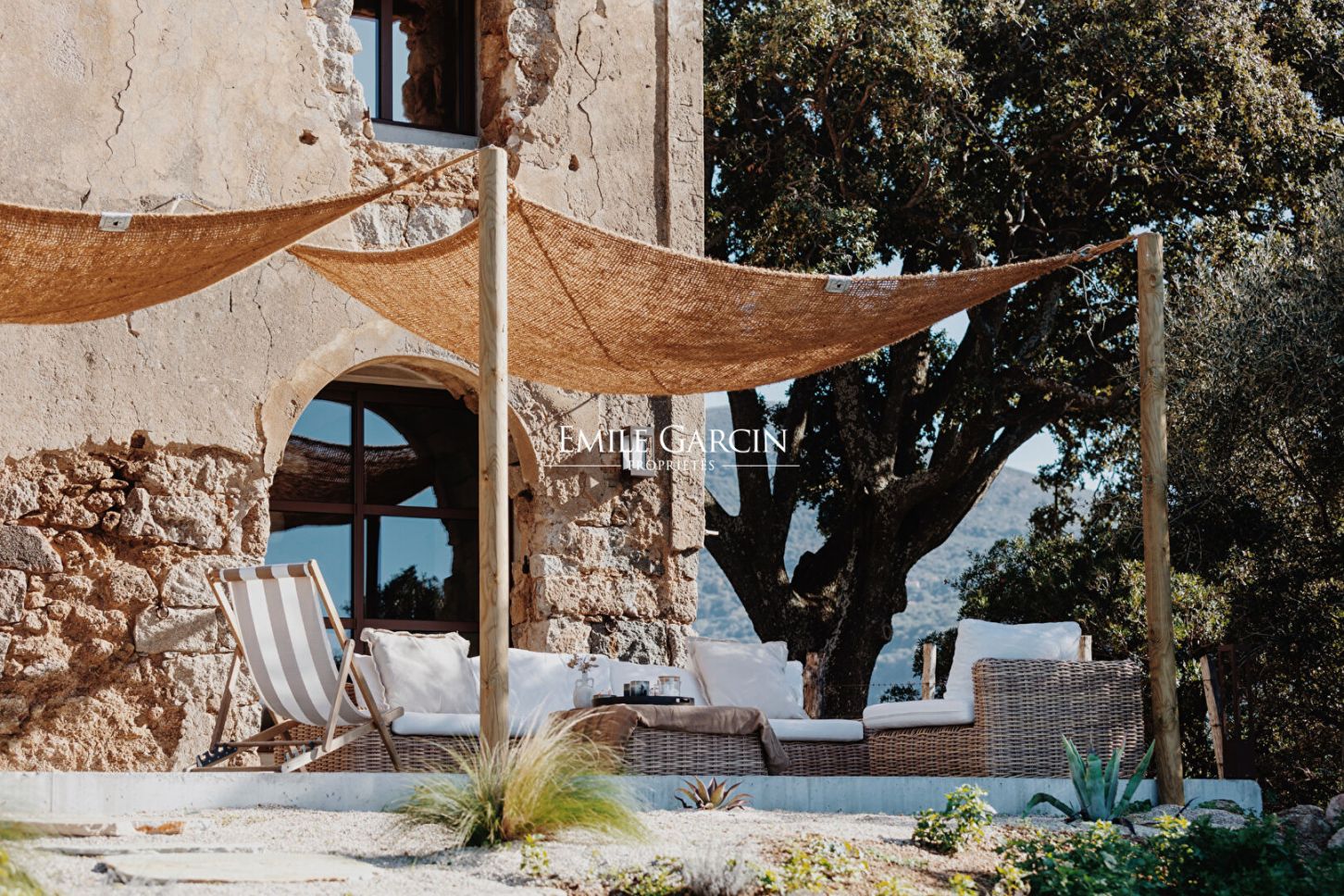 Typical period Corsican residence, fully renovated in an atypical architectural style combining the charm of stone and the modernity of raw concrete. Idyllically located a hectare of magnificent private grounds just 5 minutes from the seafront and the centre of Propriano. Sleeping capacity of 6 people (3 bedrooms, 3 bathrooms). The ideal setting for rest and relaxation. Centre of Propriano: 5 mins. Baracci beach: 5 mins. Ajaccio airport: 1h10. Cleaning services at set times during during your stay, including pre-departure cleaning. Additional services: air conditioning, swimming pool, pétanque area, vegetable garden, elevator.