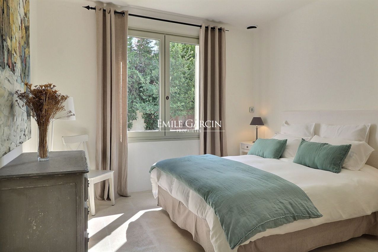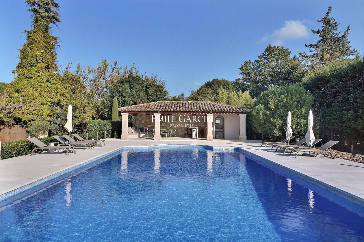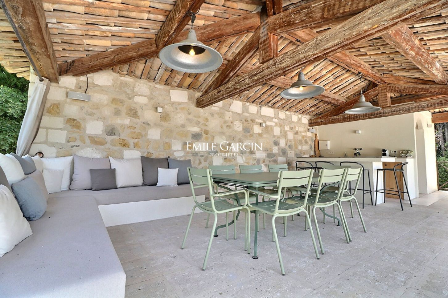 A few minutes from the village of Eygalières, set on 8000 m², this restored Provencal farmhouse of 320m² offers a sublime view of the Alpilles. 7 bedrooms, 6 bathrooms, air conditioning. Heated swimming pool 15m x 7m.