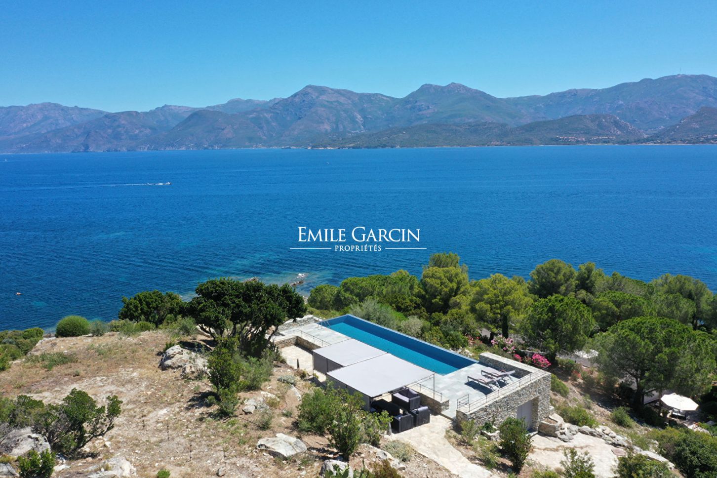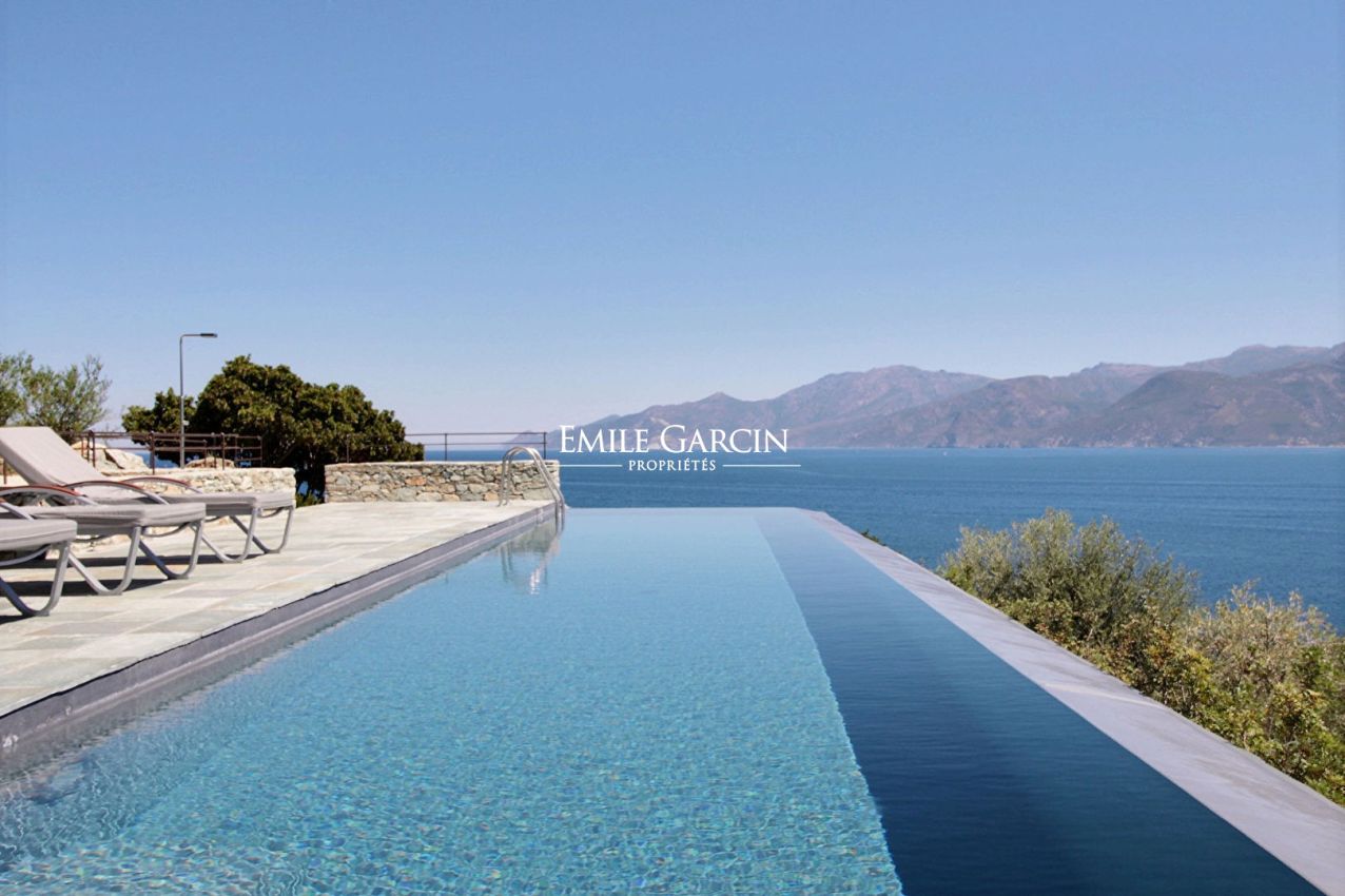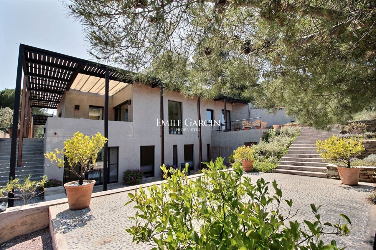 Contemporary house with 4 bedrooms and 4 bathrooms, located on five hectares of leafy grounds facing the Gulf of Saint Florent. Direct access to the seafront. The property has a magnificent view overlooking the gulf and the seaside town of St Florent. A 12.5m x 3.5m infinity pool (secured by a gate) is located on the upper part of the property. Services included in the price of your stay: a cook on site 6 days a week to prepare your meals and a housekeeper 6 days a week. There is an artists' atelier outbuilding on the waterfront, surrounded by stunning grounds including numerous fruit trees, pine trees and olive trees. Several outdoor spaces designed for peaceful privacy. Spread over several levels served by stairs, the property is divided into two parts separated by a small patio, furnished with tables and deck chairs. The property offers several access points to the seafront. Bastia Airport: 45 mins. Saint Florent: 15 mins. Caretaker's house on the property.