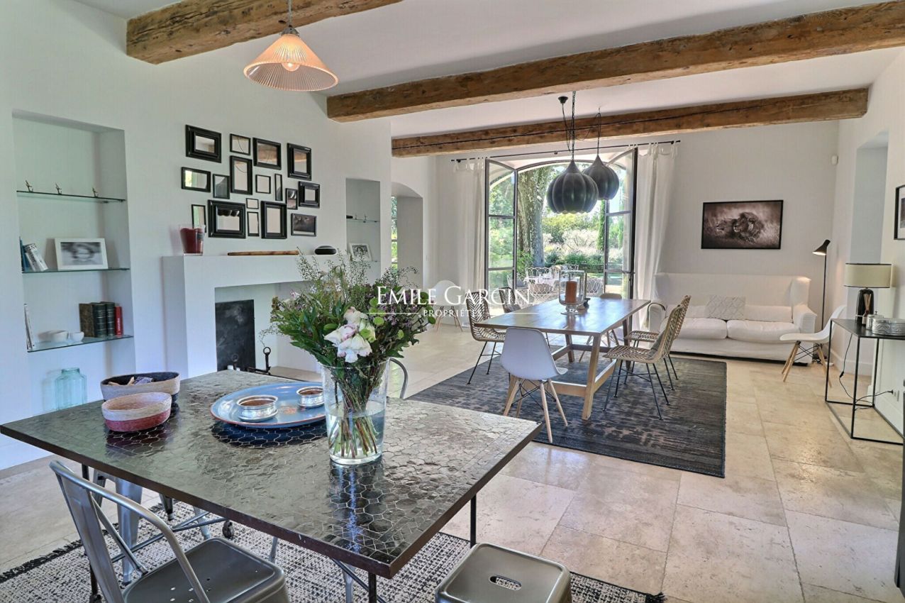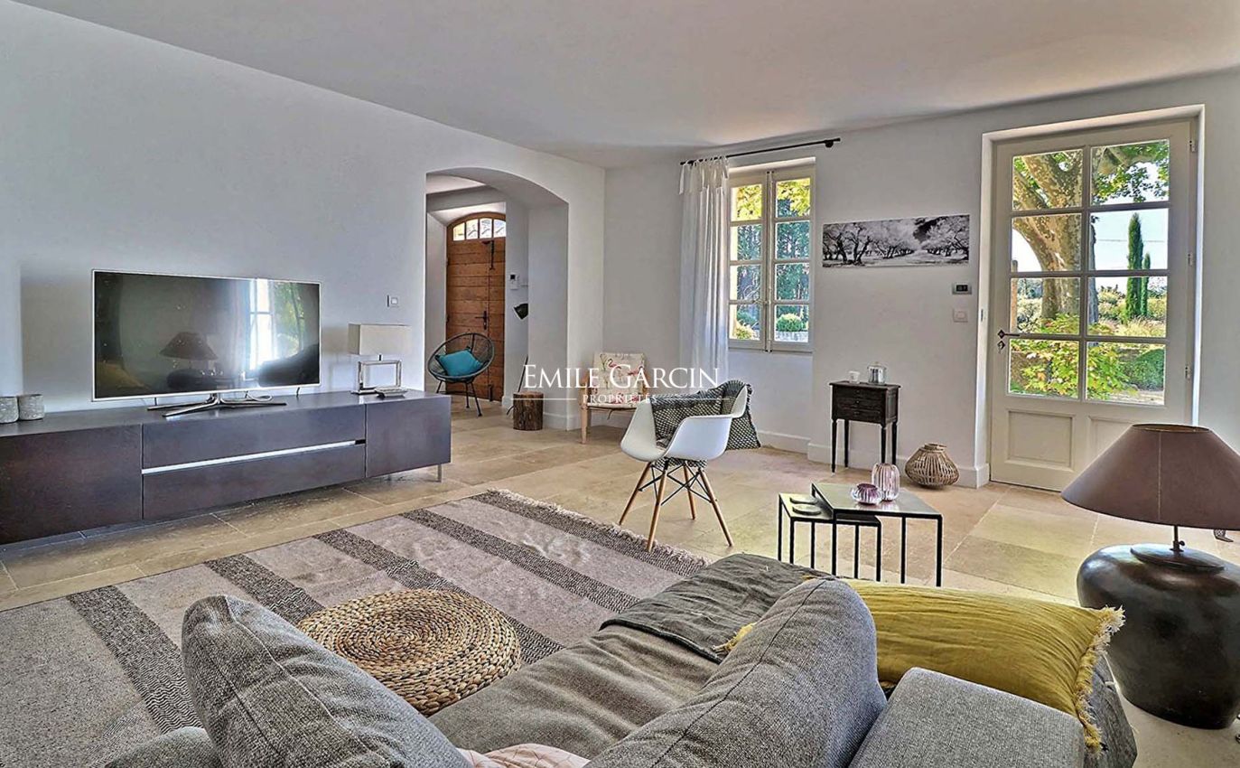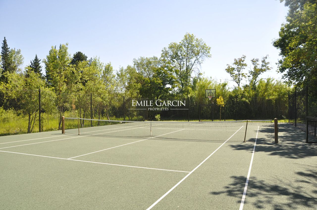 Located in pleasant surroundings just 5 minutes from the centre of Saint-Rémy de Provence, this charming 19th century farmhouse boasts a delightful garden bursting with Mediterranean flora. The main residence, tastefully restored and decorated, features reception rooms with access to the terrace and garden, 6 air-conditioned bedrooms and 4 bathrooms. The presence of a boule area, tennis court, pool house, swimming pool (16 x 6m) and vast outdoor spaces make this an idyllic setting in which to spend holidays in the company of family and friends.