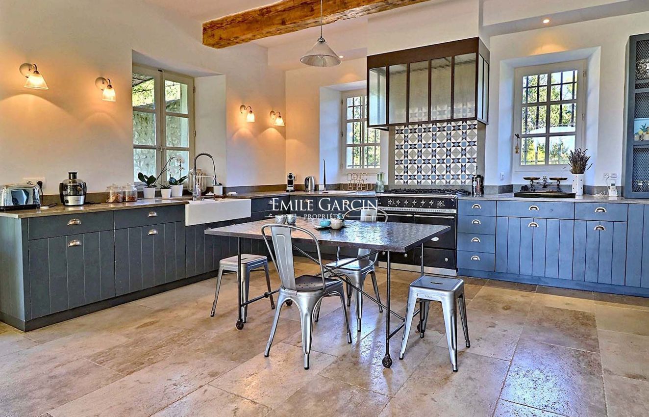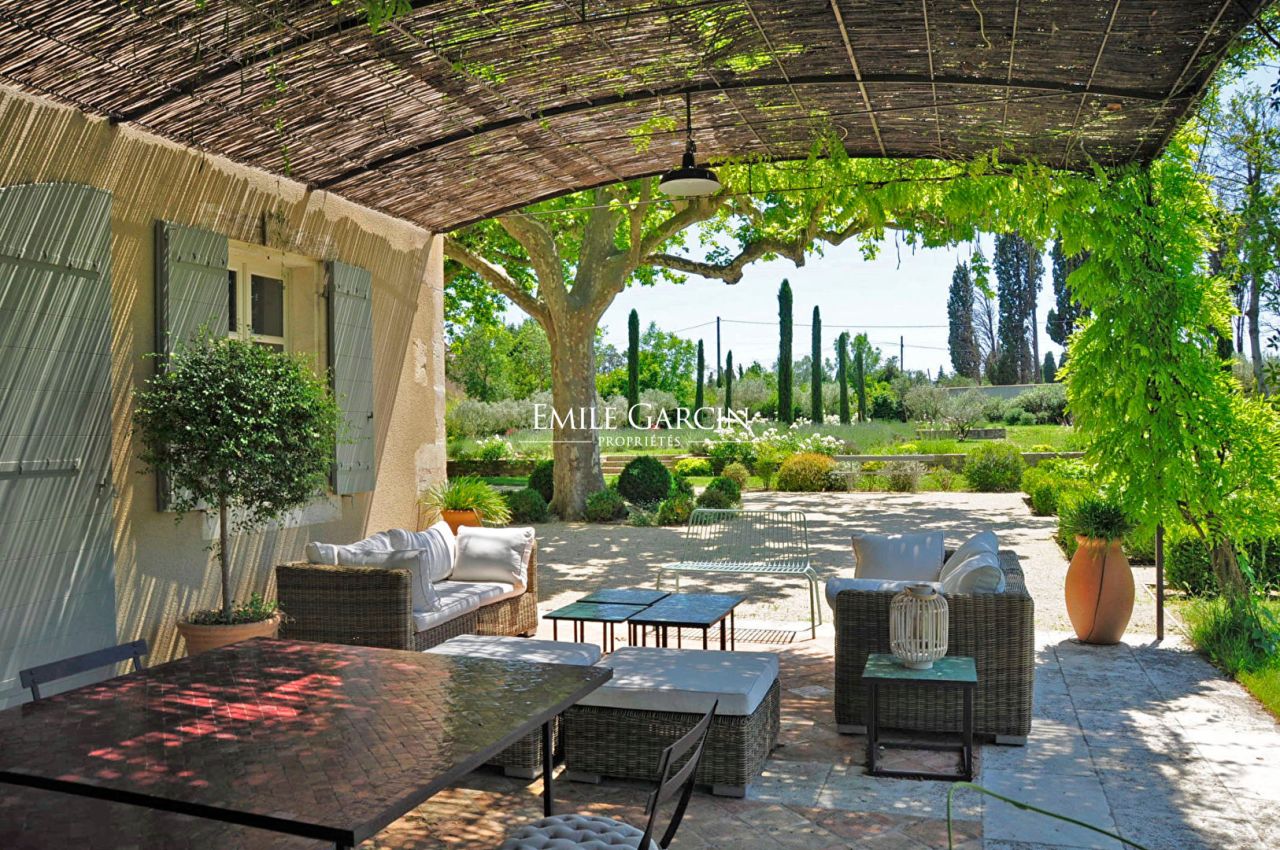 Located in pleasant surroundings just 5 minutes from the centre of Saint-Rémy de Provence, this charming 19th century farmhouse boasts a delightful garden bursting with Mediterranean flora. The main residence, tastefully restored and decorated, features reception rooms with access to the terrace and garden, 6 air-conditioned bedrooms and 4 bathrooms. The presence of a boule area, tennis court, pool house, swimming pool (16 x 6m) and vast outdoor spaces make this an idyllic setting in which to spend holidays in the company of family and friends.