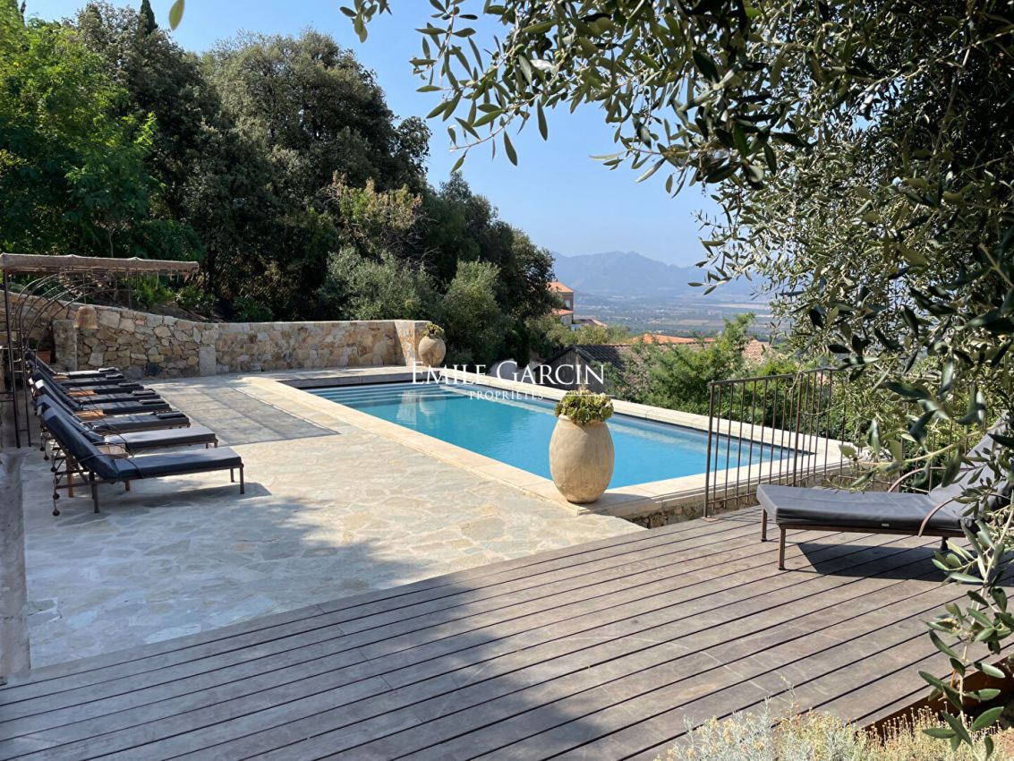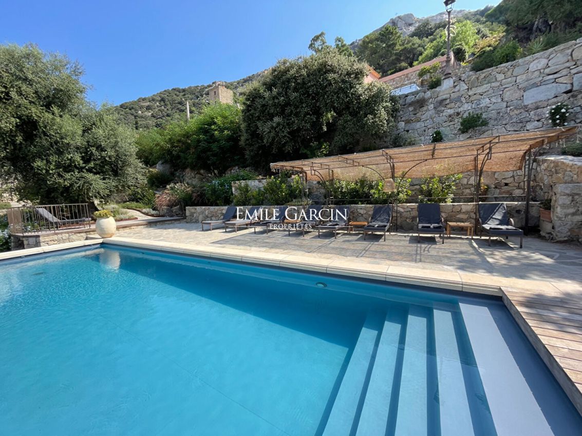 Located in the heart of the charming village of Lumio in Haute Corse, this superbly renovated 18th century mansion presents 450 sq.m of living area in an excellent location just a few minutes from Calvi and the beachfront. Fully air-conditioned. Heated swimming pool (12 x 4.5 m) secured by electric cover. Pretty pool house with fully equipped kitchen (dishwasher, coffee machine, sink, plancha, etc.). Several peaceful and intimate outdoor spaces. The house is spread over 3 levels. On the ground floor, there is the nicely decorated and fully equipped kitchen, as well as a utility room and an adjoining dining room. Bedroom 1: a family suite consisting of a bedroom with a 160 cm double bed and a second bedroom with two 100 cm single beds. This suite has a private bathroom with bathtub and walk-in shower, as well as a separate WC and a dressing room. A staircase serves the living room, with high ceilings and three large windows opening onto a beautiful terrace offering a beautiful sea view. Bedroom 3 (master suite): 180 cm double bed, shower room, toilet. Bedroom 4: 160 cm double bed. Bedroom 5: small children's bedroom with 160 cm bed on the mezzanine, and a small shower room and WC. On the second floor there is a television lounge, a small laundry room as well as three other bedrooms. Bedroom 6: 180cm bed, full bathroom, bathtub, shower, separate WC, terrace, sea view. Bedroom 7: 180 cm bed, shower room, separate WC, nice view. Bedroom 8: 1 x 180cm bed or 2 x 90cm beds, shower room, toilet. A final room has a convertible sofa and can be used as an extra bedroom. Option to rent as a 5-bedroom property on request.