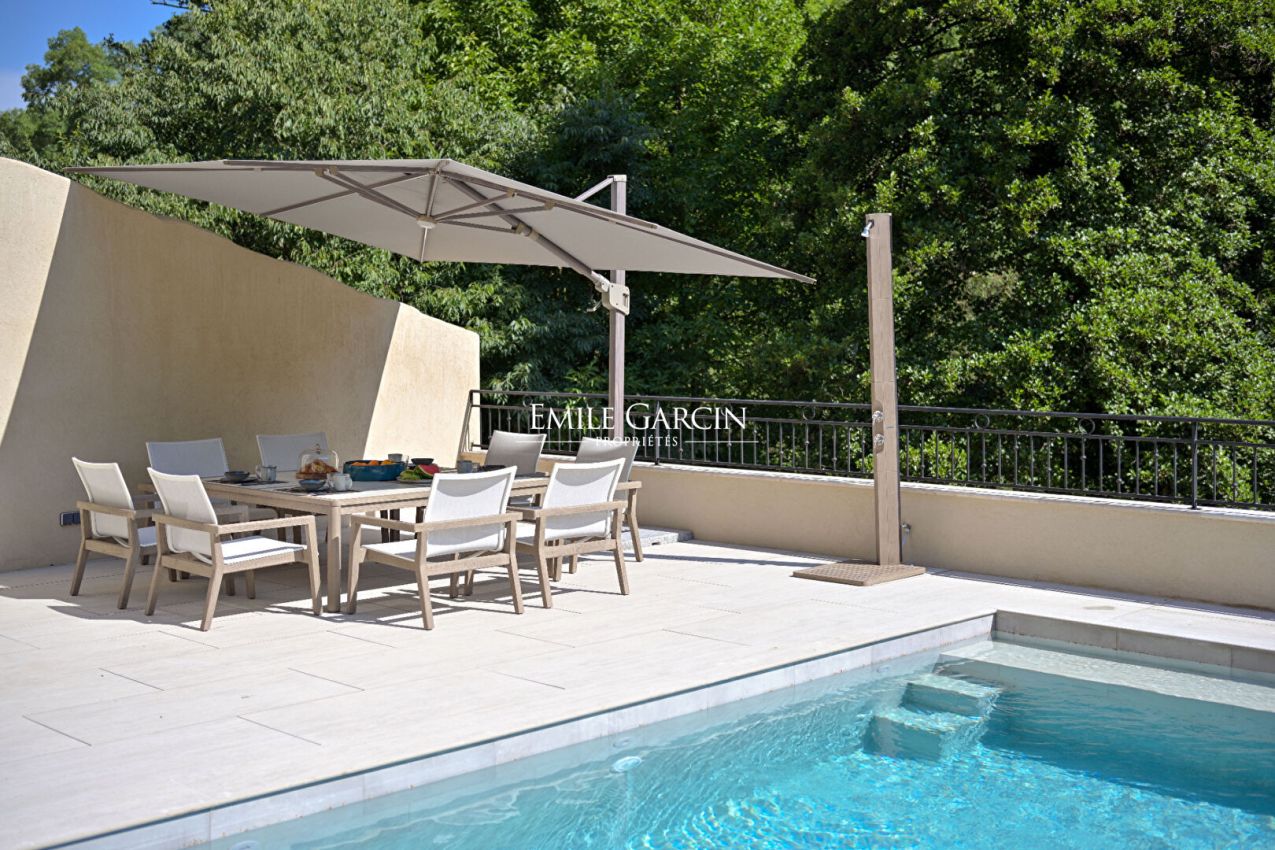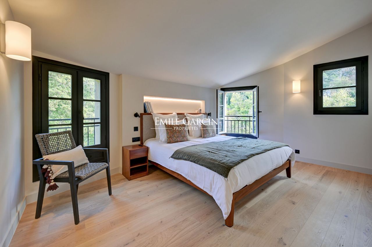 Located 200 metres from the centre of Entrecasteaux in the heart of the Provence Verte region, La Bastide de la Bresque is a converted 19th-century mill with a new 220-sq.m house. The property sleeps up to nine people across four suites. Its outstanding facilities include a heated pool with counter-current swimming system, shady terraces, a fully equipped kitchen, a garage and an electric vehicle charging station. Tucked away peacefully on the banks of the Bresque River, close to Cotignac and the Verdon region, it offers the perfect blend of authentic charm and high-end finish. There is also the option to rent a 90-sq.m reception room (formerly the wine press), which would make the ideal setting for evening gatherings with friends or wine tastings.