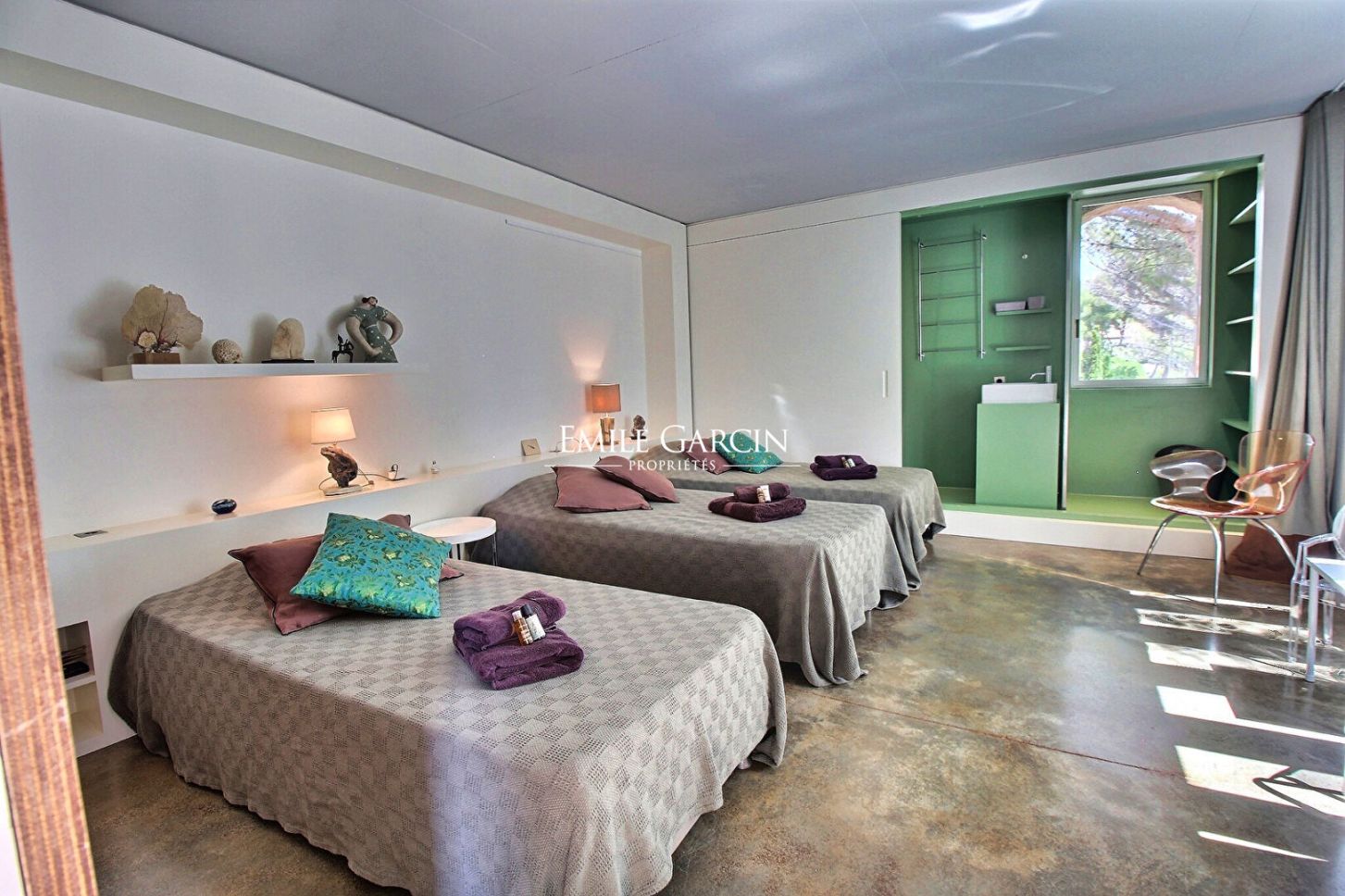 Located in a private gated estate just a few kilometres from Saint-Cyr-sur-Mer and Bandol, La Villa La Frégate is a magnificent contemporary beachfront villa presenting a high-end finish and breathtaking views of the Mediterranean. It features 8 air-conditioned bedrooms and 7 bathrooms, thereby accommodating up to 16 people. Its outstanding amenities include a heated and secure swimming pool, a hot tub, a fitness room and a hammam. Occupants also enjoy the use of tennis courts in the residence. An 18-hole, par-71 golf course is located under 10 minutes away. Available for short-term rentals all-year-round.