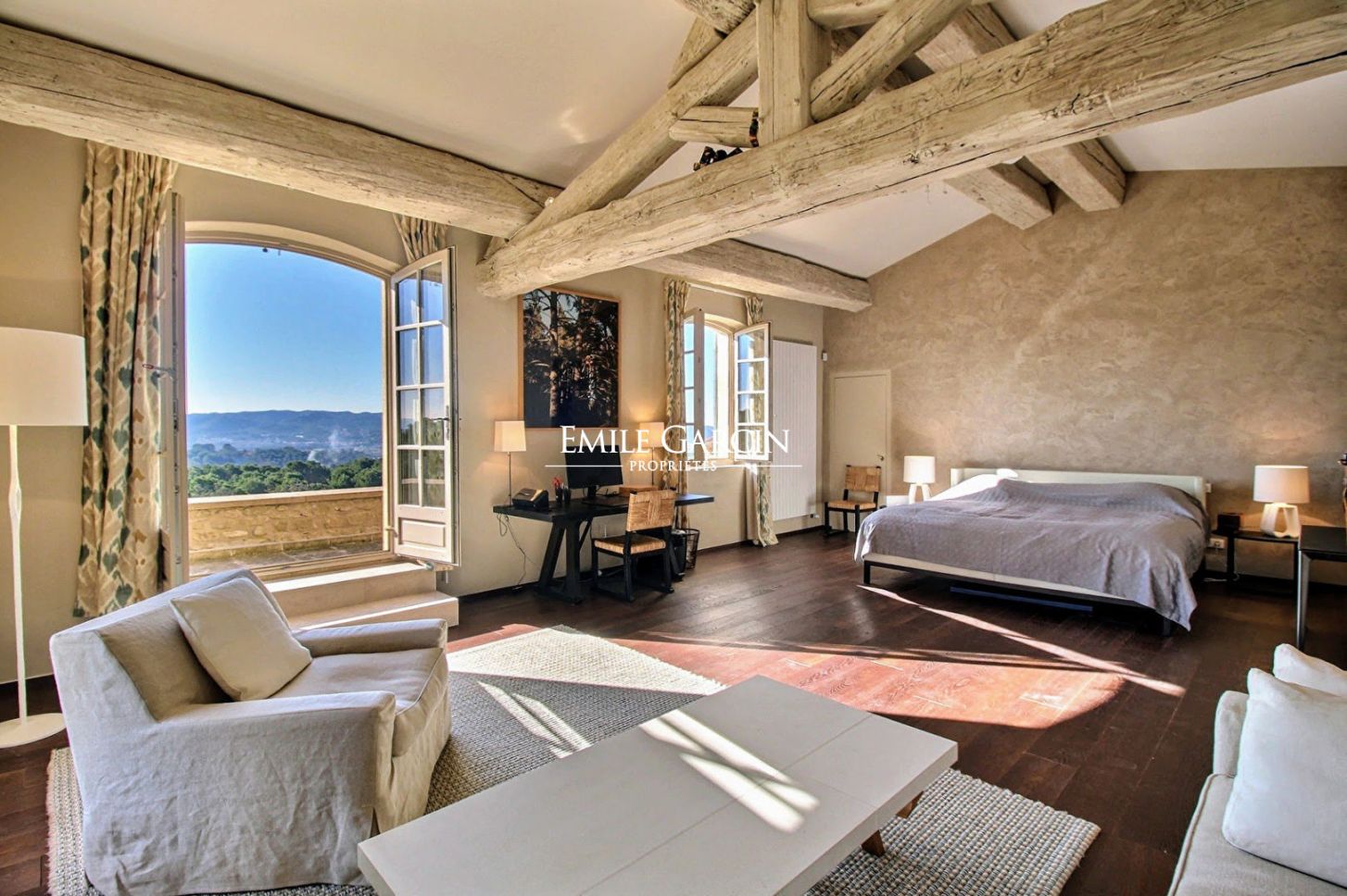Located on the edge of the Luberon, Le Domaine de la Tuilière offers a magnificent view overlooking the Vallée de la Durance, the Sainte-Victoire and the Chaîne des Côtes. Sitting on a 15-hectare estate, including 9 hectares of vines, the property is an oasis of calm. Renovated in 2019, it presents the perfect blend of character and modernity. It has nine bedrooms and eight bathrooms, including two "family" bedrooms, two master suites and an independent ensuite bedroom on the ground floor. Home cinema. Secure and heated swimming pool of 17 x 8m with equipped pool house and sauna. Optional tenth bedroom with bathroom (for domestic staff). Maximum capacity: 22 people.